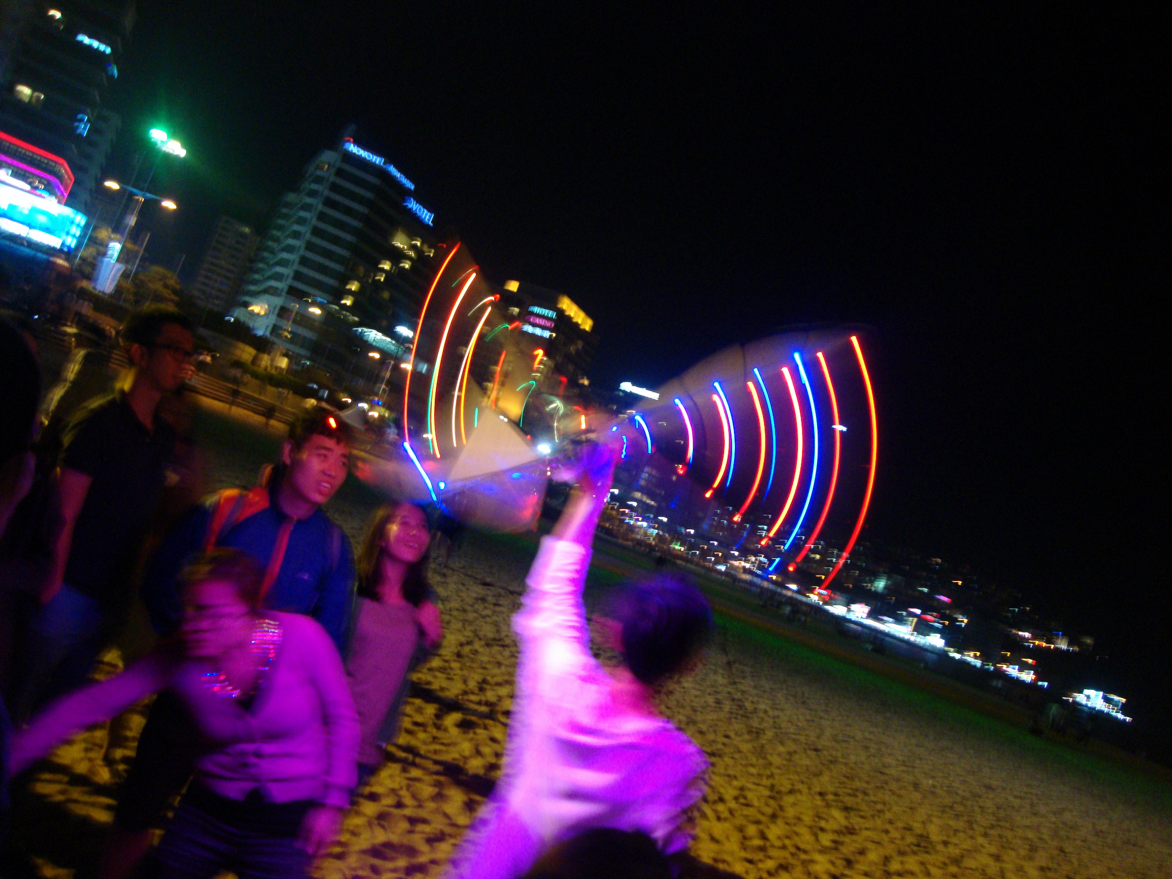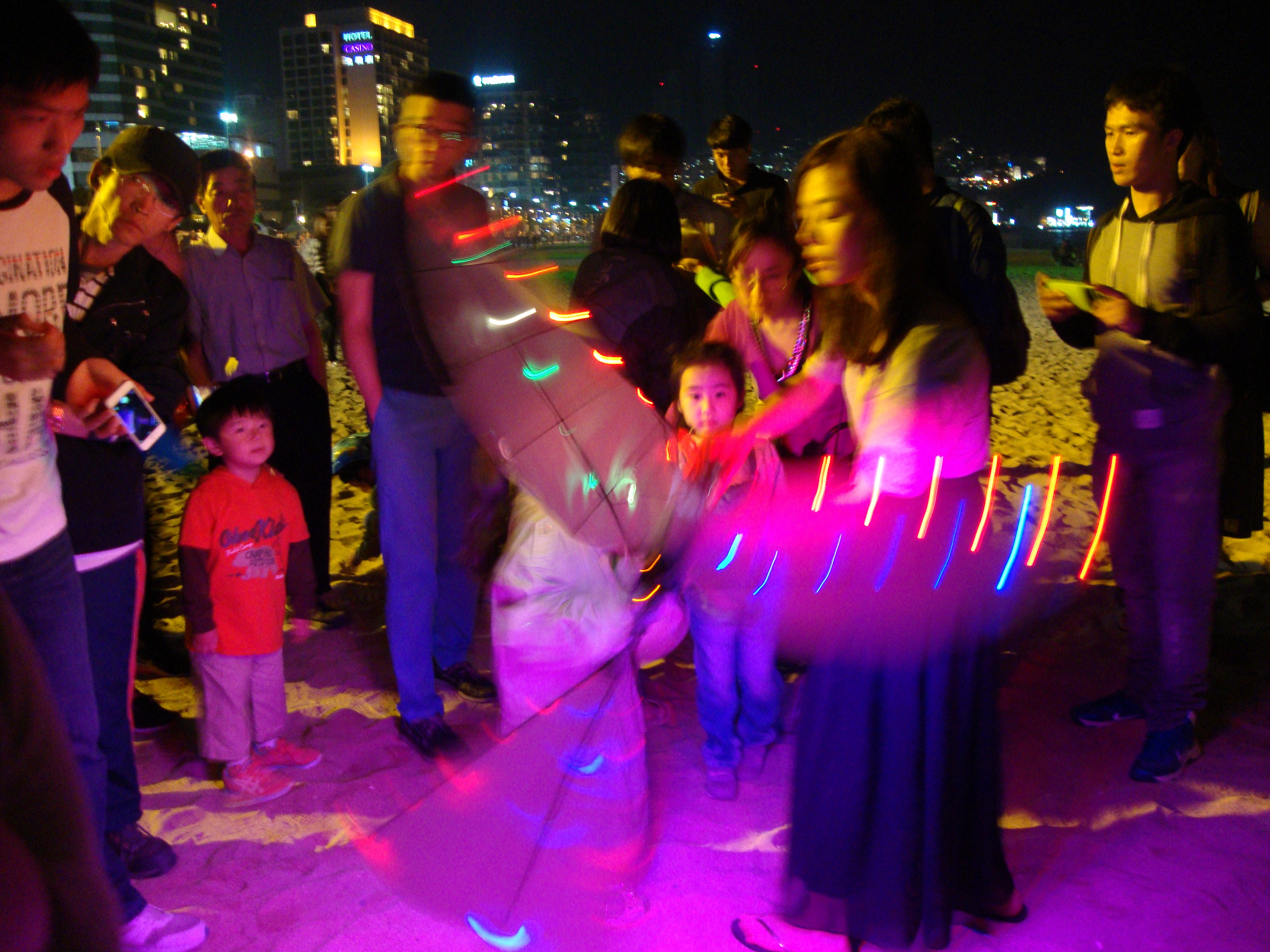 On the beach one night, we also came up on something flashy and flying in the air. We weren’t sure what it was, but from a distance it was awesome. Jacob and Adam were immediately fascinated. A local guy had made his own battery-powered giant flying and flashing bird. It was IMPRESSIVE!