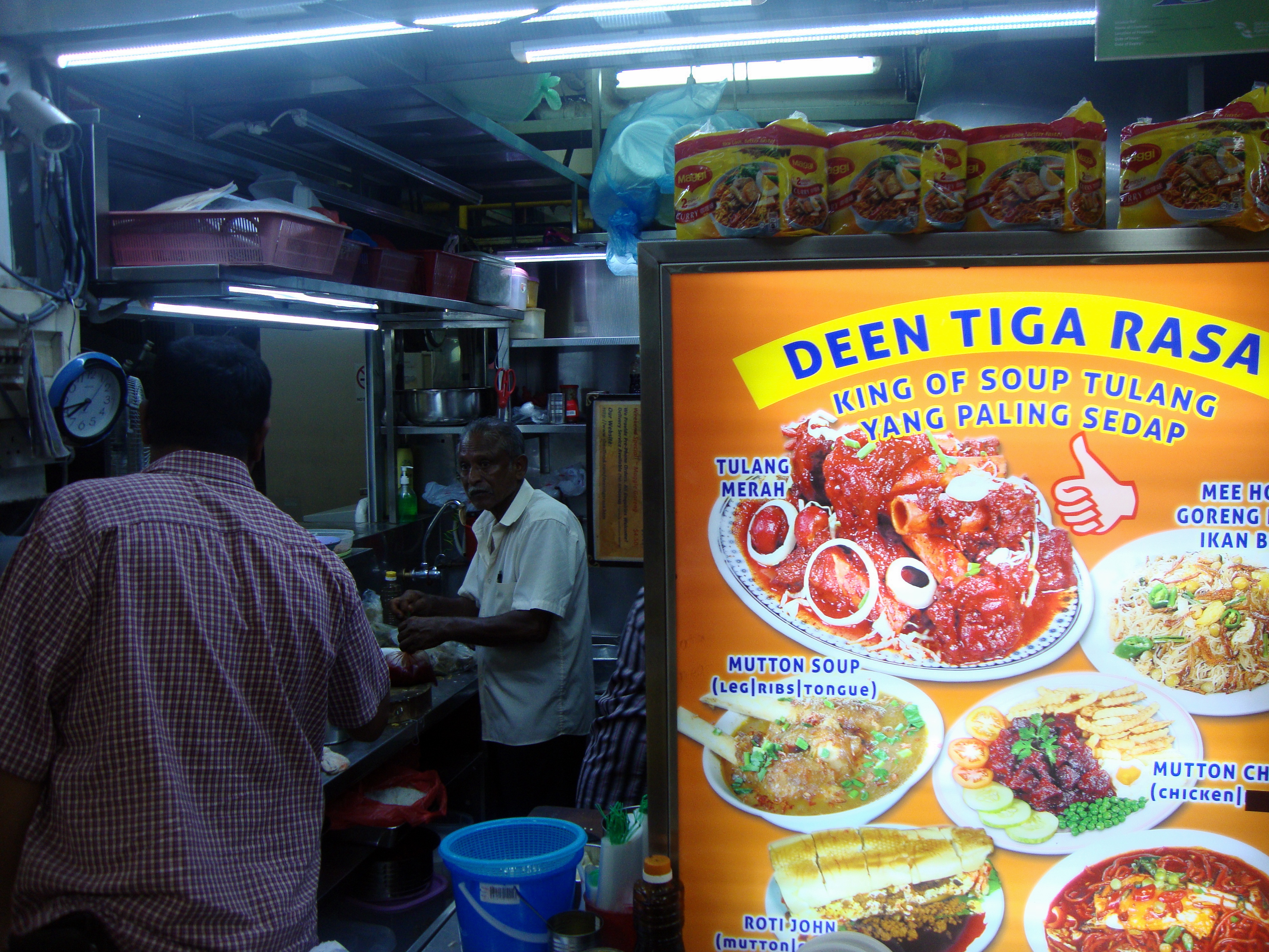 After the gardens, I got back on the bus tour and made my way to the Golden Mile Food Centre per Michael’s request. He saw on Anthony Bourdain’s show that he’d been here, and he absolutely loved the soup (sup) tulang. So Michael sent me on this journey, and I had no idea what I was getting into. It is a dish of bone soup made of mutton or beef bones stewed in a spicy and sweet red dye sauce/soup of mutton stock, tomatoes, chillies, spices, and ginger. The bone marrow inside the bones is the real reward. I walked around the Golden Mile Food Centre (another hawker centre) in search of this soup. I found it on the basement floor, and I placed my order. While they were preparing it, I went to a few stations down and asked the lady for a lime juice drink that was delicious. When I got back to my soup tulang, I was served three large bones in red soup, a pile of bread, a straw, and a fork. It looked like a big bloody pile of bones, but it smelled delicious. Hmmm… I had no idea how to go about eating. I first dipped some bread in the sauce, and it was very tasty. I then picked up my plastic fork and tried to scrap some of the non-existent meat off the outside of the bones. My fork was no help, so I decided to pick up the bone and try to eat it like fried chicken. It was all over after that. I looked like I’d been to war because of the red dye soup sauce that was nearly up to my elbows. To get any of the meat, I had to dig at it with my fingers, staining up under my fingernails, etc. The more I tried to stay clean, the worse it got. I looked around slightly embarrassed, and the locals looked like I was being normal. A few of the tourist were eying me.
