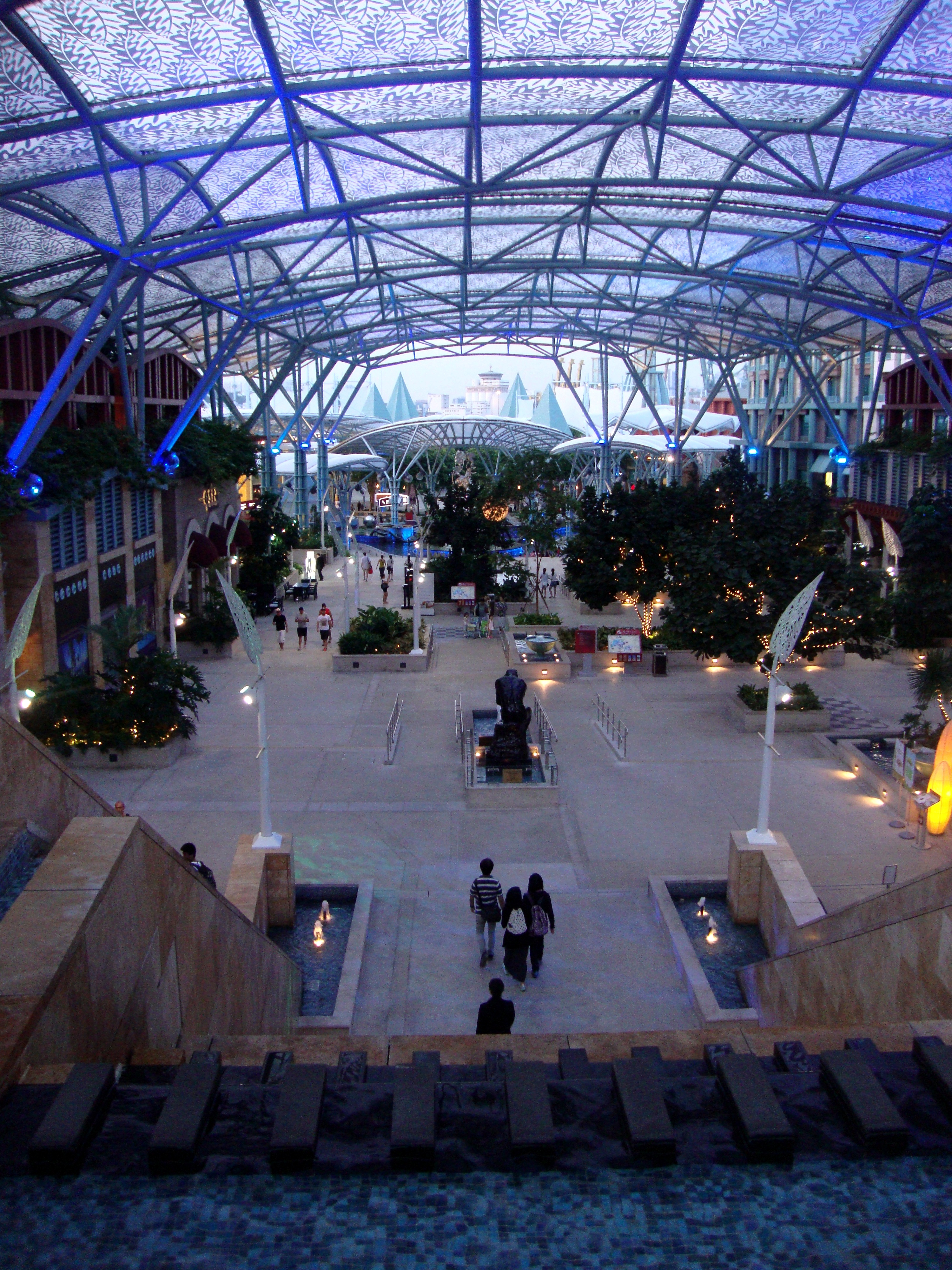 I heard Sentosa was worth the visit, so I headed that way and stopped off for a lunch of char kway teow again at VivoCity. To save money, I walked across the boardwalk that connected Singapore to Sentosa, and it was a very pleasant and easy stroll. I visited what claimed to be the world’s largest oceanarium. It was really great, and I was fascinated by it. I spent probably five hours in there, and for most of it I just sat and stared into the big aquariums (while indulging in one round of cotton candy that was meant for the kids). After the aquarium, I walked around the rest of the island. Everything about it was completely manufactured and fake. The island had a Universal Studios, which was part of its big draw for visitors. I’m pretty sure that Singapore just created the island, beaches and everything. It was still nice to visit. A peacock crossed my path just roaming around, and it made me wonder how it got there. I walked through three beaches and enjoyed my time sitting and reading. After the sun went down, I made my way back to the hostel and had dinner at the Lavender hawker station across the street. I had Hainanese chicken rice and fresh spring rolls for a couple of dollars.