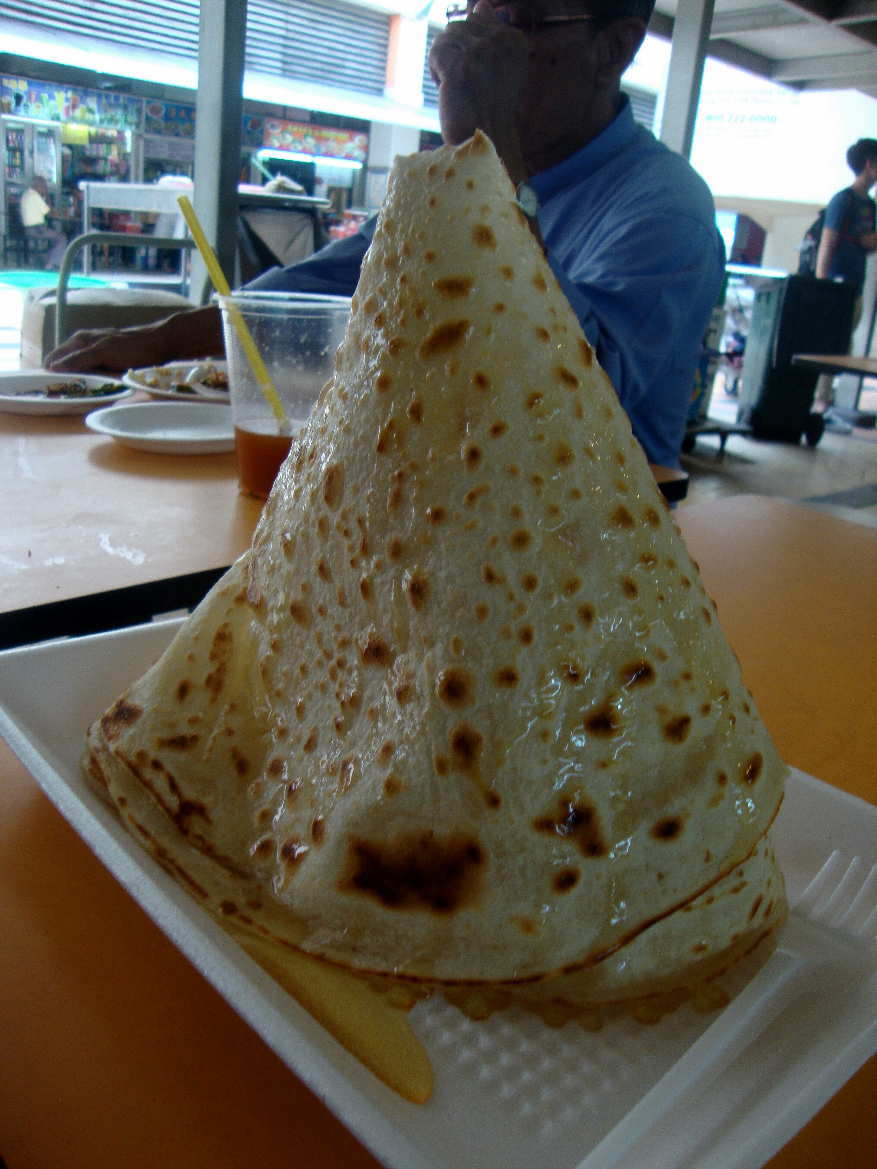 For my last day in Singapore, I returned back to Little India for more great food. I had the murtabak, a listed essential food in Lonely Planets top picks. It was delicious. It was a pan-fried pancake stuffed with minced meat, garlic, egg, and onion. I met a nice older Indian man at my table and enjoyed learning about him. He told me it was a hard life for many of them in Little India in Singapore. He was a nurse for the psychiatric hospital nearby where he saw people after the judge sentenced them to get help. I was enjoying the conversation, so I ordered dessert from the hawker station. It was a tissue honey prata that the Wong family had said I should try. It was tasty and reminded me of the sopapillas I have from the Mexican restaurants at home (just a bit crispier).