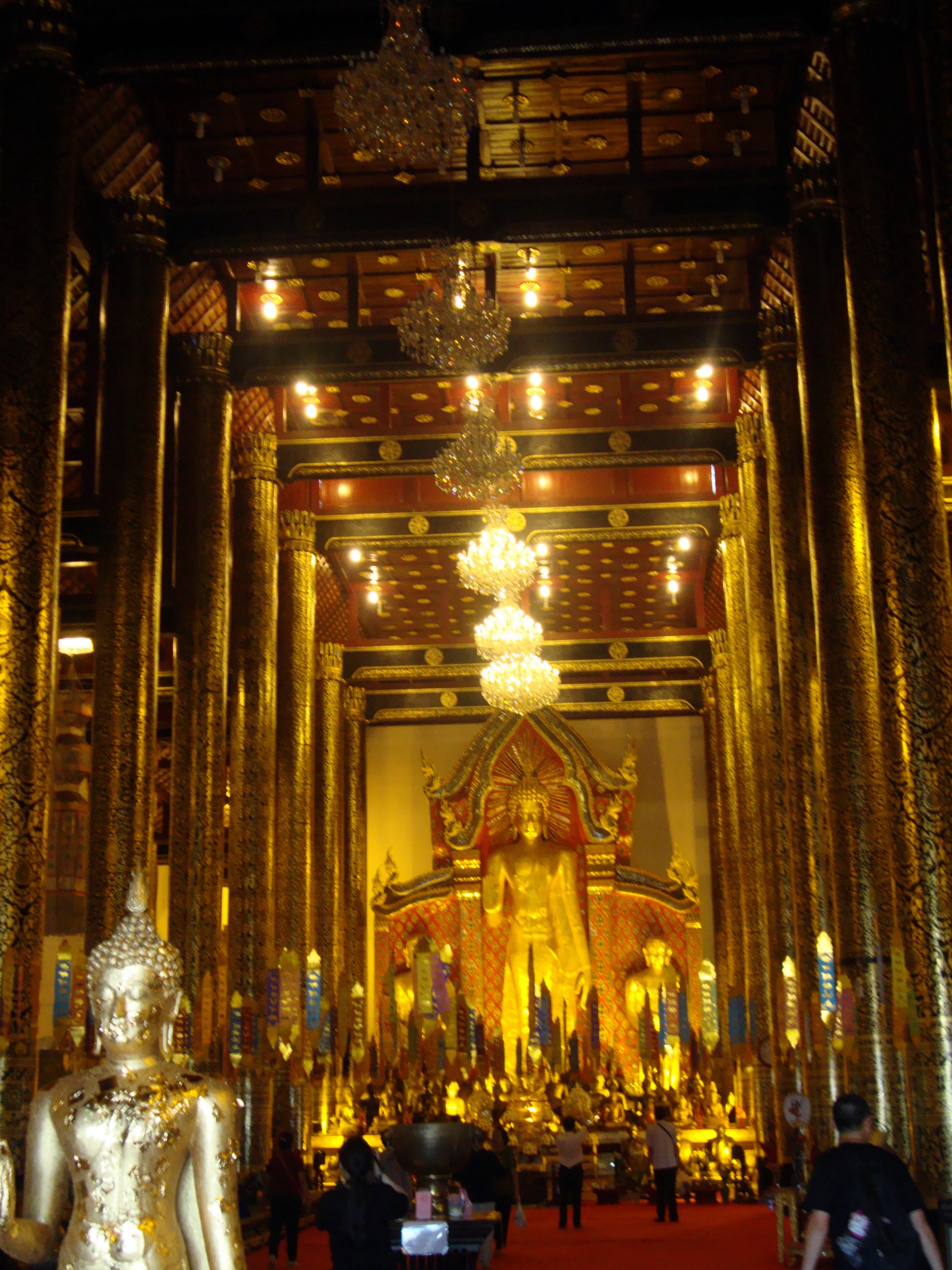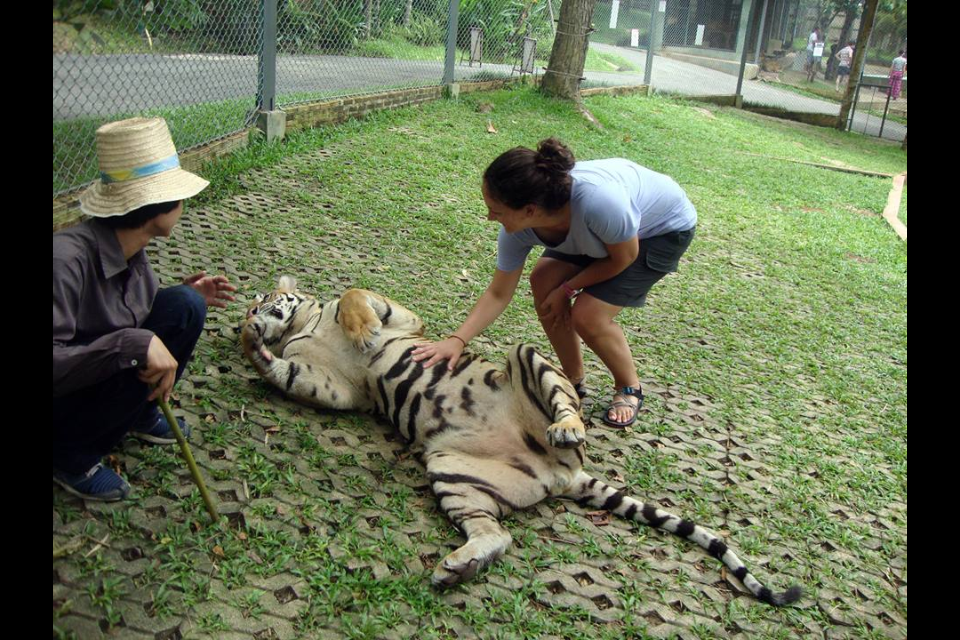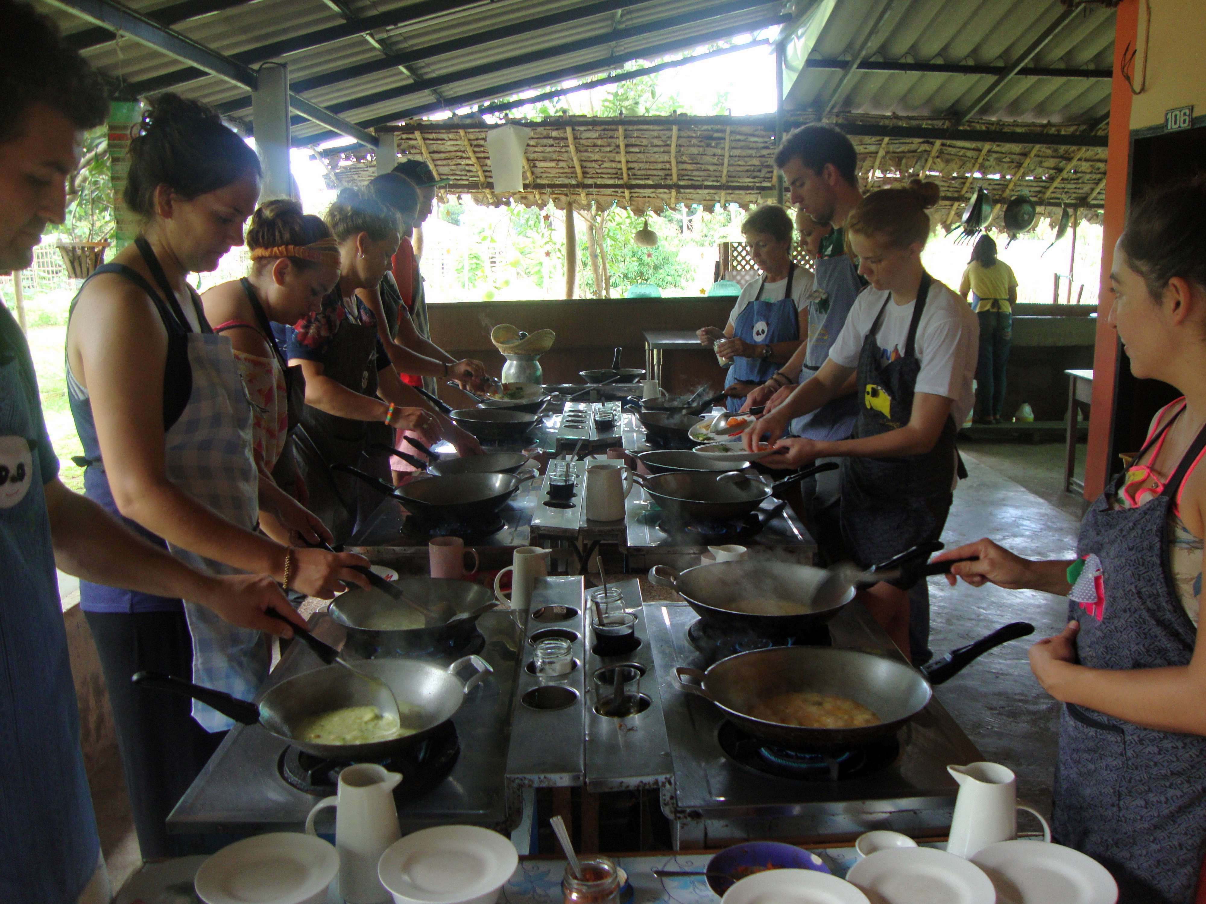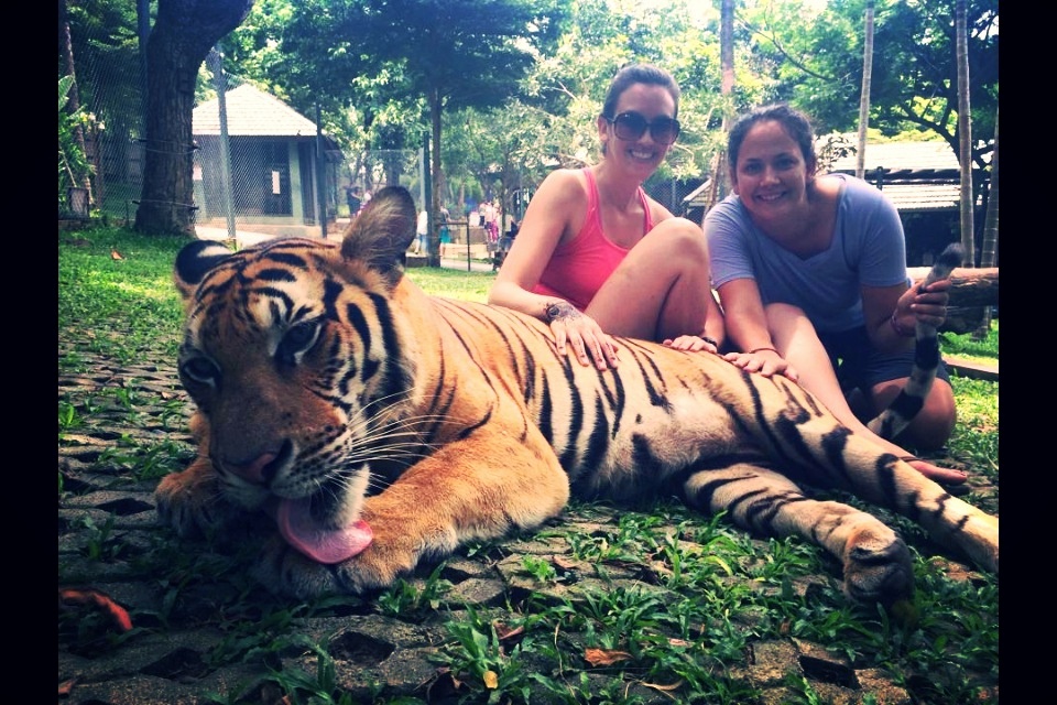 We tried to research the quickest way to get to northern Thailand from Inle Lake because we were directly across the border. However, we couldn’t find a good way to cross via land, so we decided to take the overnight bus (yes another!) back to Yangon in hopes we’d have better luck catching flights. We arrived in Yangon after 12 hours and took a taxi to the airport. We didn’t have a flight, but we hoped to catch one back to Bangkok. The first several airlines turned us down—one even saying that the internet was down for the entire airport, and they couldn’t issue a paper ticket (and it could be down sometimes three hours or three days, so we’d just have to wait). Finally we found a small airline called Nok Air that was able to issue a paper ticket and get us on a flight to Bangkok within the hour. At Bangkok, we went through the same process, and we ended up going with Nok Air again (gotta love Nok Air). We flew to Chiang Mai (northern Thailand) and arrived in town by 2:00 PM. I thought this was impressive since we were just in Inle Lake the night before with no transportation booked. Twelve hours of bus and two flights later, we made it. We didn’t have a place to stay in Chiang Mai, so we had our taxi driver Bobo take us to the one that Lonely Planet recommended the most. It was full, but they recommended the place next door. It was cheap ($6 night) with air conditioning, so we took it. Bobo was selling his taxi services hard core, so we took his card in case we decided we needed him. That afternoon we discovered the wonderful world of hour long $6 massages and great Thai food. I realized very quickly that Chiang Mai is a place that I could stay for quite awhile. The size of the city is just right. The old city is surrounded by a mote and walls. The food is amazing, the people are friendly, and of course the ability to afford daily massages is a major perk. Over the next five days, Alicia and I enjoyed visiting night and day markets, temples, yoga (first time!), massages, Muay Thai/Thaphae Boxing matches (and a class for Alicia), cabaret show, seeing tigers, snakes, monkeys, orchid gardens, and watching the World Cup. We also took a day long cooking class where I made papaya salad, sweet and sour prawn soup, green curry, pad thai, and mango sticky rice. I had a blast. They gave us a cookbook, so I’m going to replicate it at home.