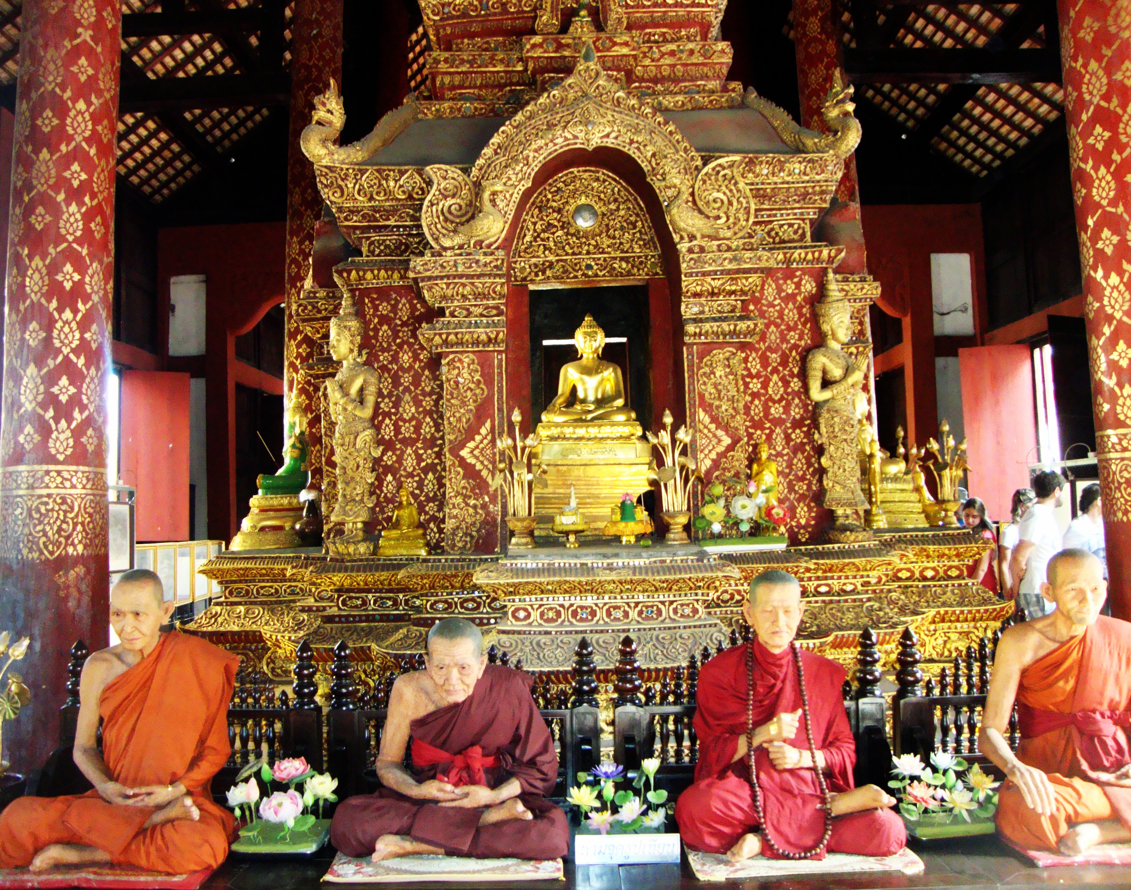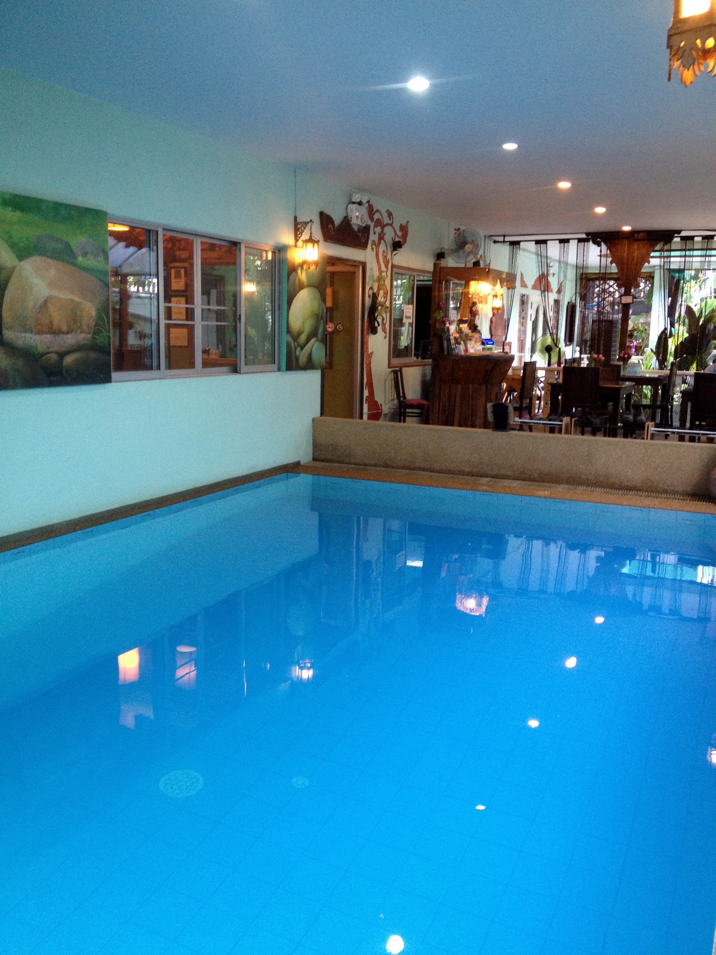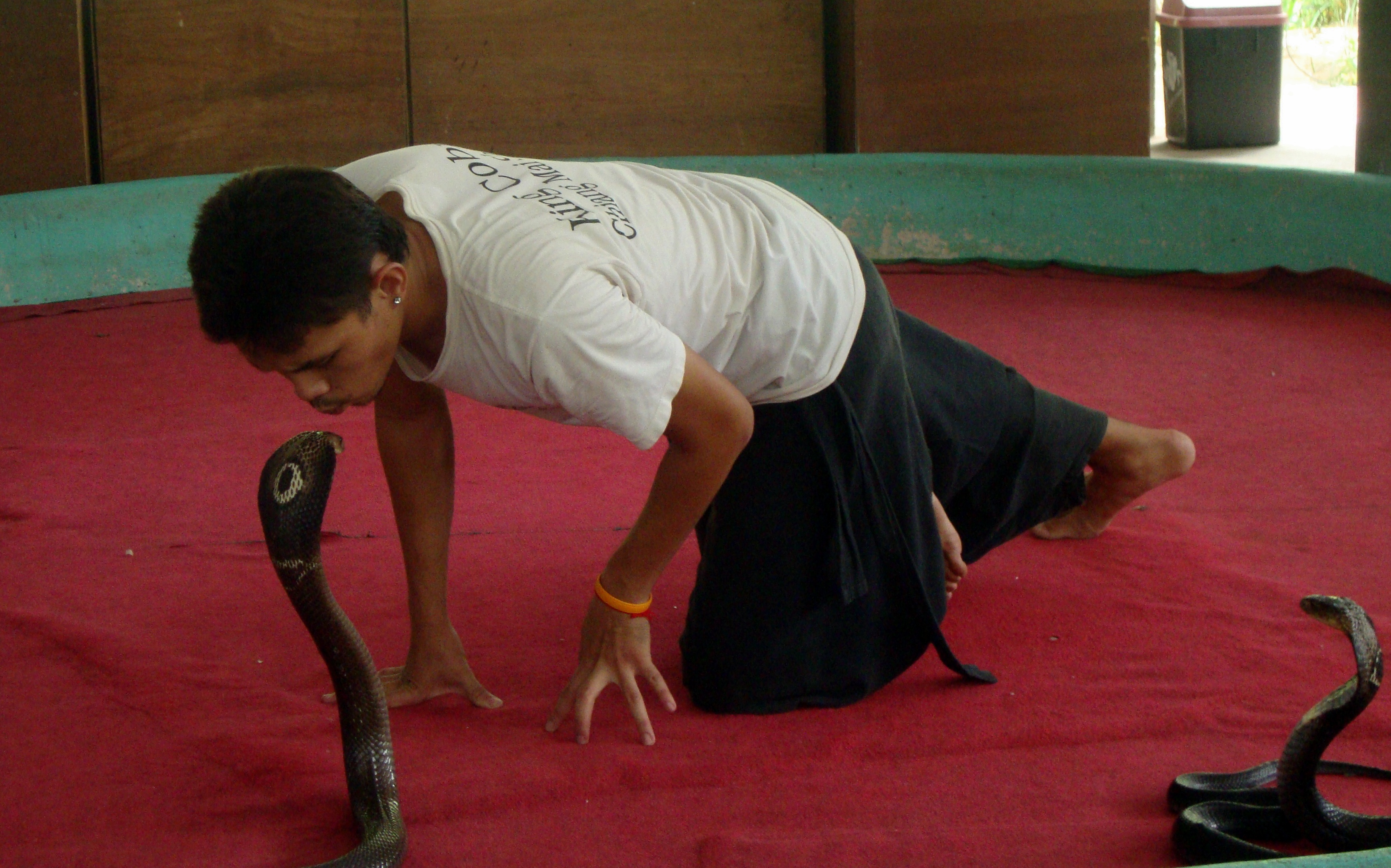 We tried to research the quickest way to get to northern Thailand from Inle Lake because we were directly across the border. However, we couldn’t find a good way to cross via land, so we decided to take the overnight bus (yes another!) back to Yangon in hopes we’d have better luck catching flights. We arrived in Yangon after 12 hours and took a taxi to the airport. We didn’t have a flight, but we hoped to catch one back to Bangkok. The first several airlines turned us down—one even saying that the internet was down for the entire airport, and they couldn’t issue a paper ticket (and it could be down sometimes three hours or three days, so we’d just have to wait). Finally we found a small airline called Nok Air that was able to issue a paper ticket and get us on a flight to Bangkok within the hour. At Bangkok, we went through the same process, and we ended up going with Nok Air again (gotta love Nok Air). We flew to Chiang Mai (northern Thailand) and arrived in town by 2:00 PM. I thought this was impressive since we were just in Inle Lake the night before with no transportation booked. Twelve hours of bus and two flights later, we made it. We didn’t have a place to stay in Chiang Mai, so we had our taxi driver Bobo take us to the one that Lonely Planet recommended the most. It was full, but they recommended the place next door. It was cheap ($6 night) with air conditioning, so we took it. Bobo was selling his taxi services hard core, so we took his card in case we decided we needed him. That afternoon we discovered the wonderful world of hour long $6 massages and great Thai food. I realized very quickly that Chiang Mai is a place that I could stay for quite awhile. The size of the city is just right. The old city is surrounded by a mote and walls. The food is amazing, the people are friendly, and of course the ability to afford daily massages is a major perk. Over the next five days, Alicia and I enjoyed visiting night and day markets, temples, yoga (first time!), massages, Muay Thai/Thaphae Boxing matches (and a class for Alicia), cabaret show, seeing tigers, snakes, monkeys, orchid gardens, and watching the World Cup. We also took a day long cooking class where I made papaya salad, sweet and sour prawn soup, green curry, pad thai, and mango sticky rice. I had a blast. They gave us a cookbook, so I’m going to replicate it at home.