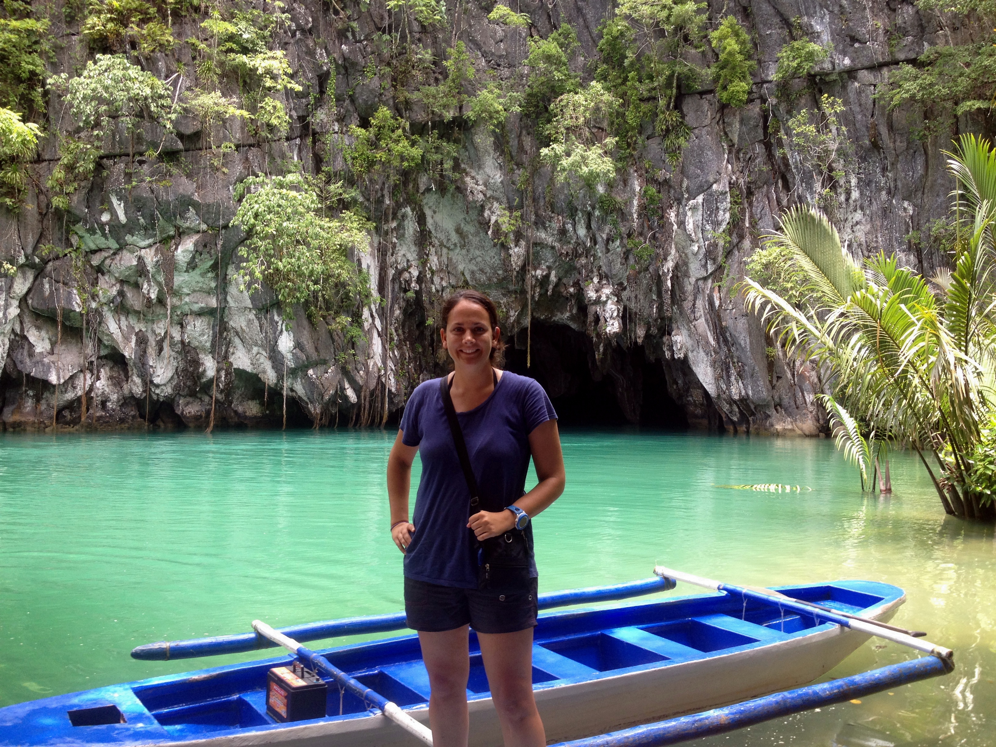 The flight into Palawan was beautiful because the plane stayed low, and I could see all the beautiful islands and blue shades of water. When I arrived in Puerto Princesa, I immediately took a 6-7 hour bus north to El Nido. On the ride I met a nice lady. I was to arrive late that night, so I was trying to call from while en route to book a place to sleep that night. I found a cheap place on the water, and I woke up to a phenomenal view. El Nido is surrounded by the Bacuit Archipelago, a group of limestone cliffs/islands coming out of the water, a UNESCO World Heritage Site. I booked Tour C, and hopped around Hidden Beach, Helicopter Island, Secret Beach, Matinloc Shrine, and Star Beach. It was stunning. The water was so blue and so perfect. My favorite experience was Secret Island. We pulled up to a rock island with no beach. Everyone was confused because all we saw was rock and water. The guide pointed to a rock and said that was where we entered. Only every four waves or so did the water get low enough to see a tiny little hole that each of us were supposed to swim through. The water was so blue, I was excited to play around in it. Half the boat decided it was too dangerous with the waves crashing on the rocks. I was second in line to go through the tiny hole. The guide said to swim down as low as possible and come out the other side. One bald man went before me, and I was thinking he was getting too close to the rock without going under. He was waiting, and the wave crashed his bald head into the jagged rock. I could see blood coming out of his head. I immediately went under water and swam for a very long time until I was sure I was on the other side clear of any danger. The other side was a peaceful area hollowed out of the island mountain. It had a circle of water with coral for snorkeling and a very tiny beach. It was quite exhilarating, and the sense of adventure made it quite fun. The guide told us that the water was lower in other times of the year and makes it easer for people to get in. When we got back into the boat, three people had smashed their heads on the rock (making only a few of us with no problems). I love that they allowed us to go in (says the girl with no injuries)…a sort of enter at your own risk method. If you think it’s unsafe, don’t go…up to you. In the US, they never would have allowed that tour because of all the lawsuits that make everyone scared. We moved on to other islands, and we had a delicious lunch cooked on the rocks. That night I took the long bus back to Puerto Princesa and stayed in a really cool hippy-style hostel called Banwa Art House. Another highlight of Palawan was the Puerto Princesa Subterranean River National Park, an underground river cave, voted one of the New Seven Wonders of Nature http://en.wikipedia.org/wiki/New7Wonders_of_Nature. Puerto Princesa was a good base to go see it. We took a two hour bus ride, then a 15 minute boat ride to the cave’s entrance. It is believed to be the longest underground river cave in the world. Once on the island, we saw several monkeys and got on a small flat boat to enter into the cave. The cave’s river emptied into the ocean, and the entrance was quite nice. Immediately, the smell of bat guano was so strong that it was unpleasant. Swallows were everywhere, and the stalactites and stalagmites were beautiful. The river was 26 kilometers long, and we were allowed to go 1.6 kilometers in it (if I remember correctly). At one point the ceiling was 200 feet tall. It was quite a wonder. Back in Manila, I spent a day exploring the city. At Fort Santiago, I learned about Rizal (the local hero) and some of history of the city. I found a tuk tuk driver that took me around all day. He took me to a clean local restaurant for my last stop, and I got a lot of surprised looks from the locals when I walked in. They spoke no English, so I had to go with the old “point and smile” language. While eating, a young worker across the way hollered out to me to ask if I wanted any “soap”. I looked at him confused, and a lady in the back corner started laughing because she realized he meant “soup”. The restaurant had a good laugh. My flight out was late that night, but I found a park to sit and read/write for awhile.