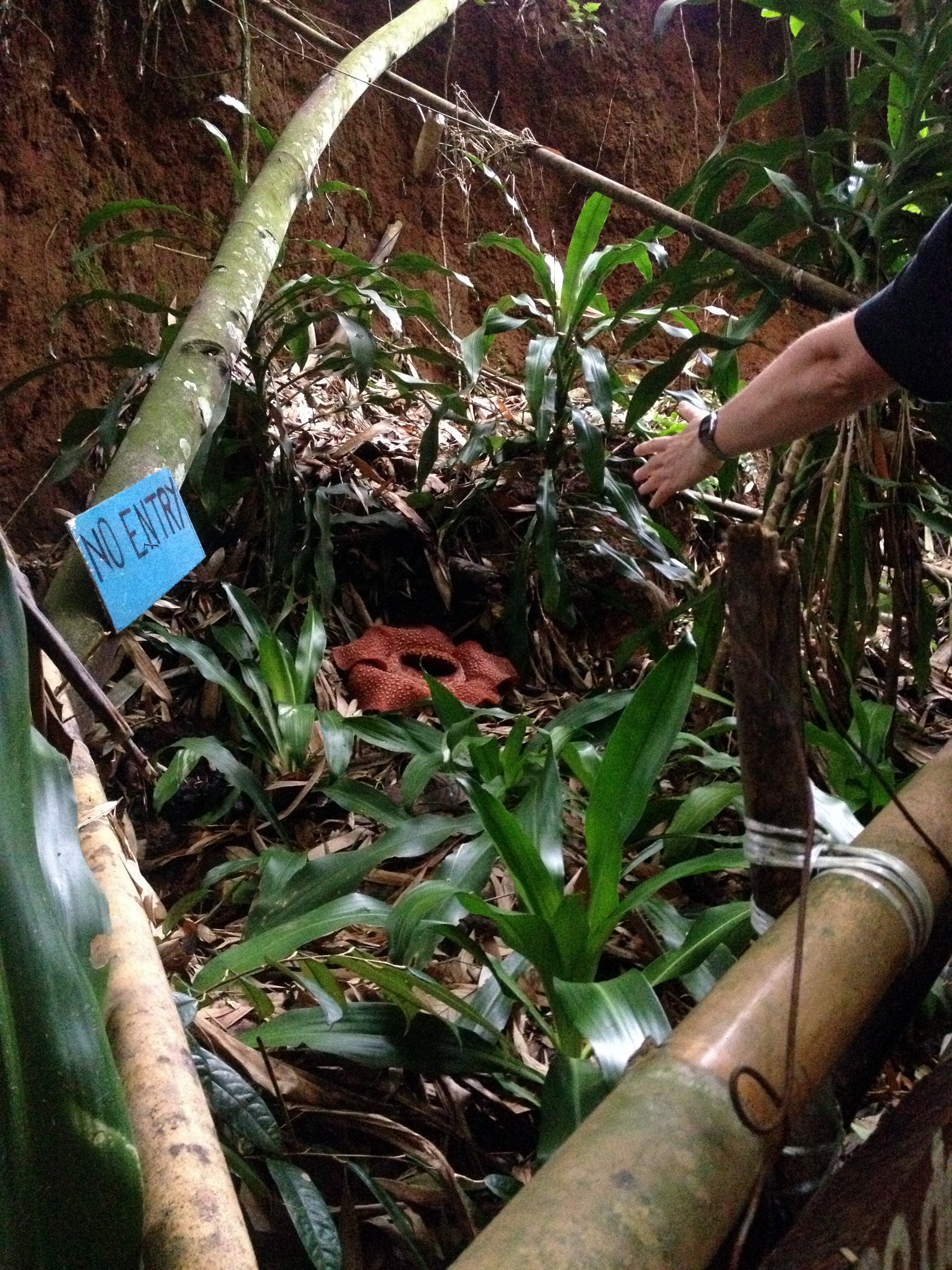 Instead, I enjoyed a day trip to Mount Kinabalu (UNESCO site), the tallest mountain in southeast Asia. Many people trek a couple of days to the peak, but I opted out simply because I wasn’t in the mood to endure a multi-day hike. We were lucky to get a great view of the peak from the lookout point. Kinabalu Park is home to many rare orchid species and carnivorous plants. We stopped by Poring Hot Springs, a waterfall, a rainforest park canopy walkway, and the botanical gardens. It was a nice day, and I made friends with a woman from Hawaii (originally from Singapore by way of China). She was likely in her 80s, and she was traveling alone. I loved visiting with her, and she inspired me. On the return trip, we were lucky enough to see the world’s largest flower, which is rarely in bloom. The rafflesia is found in southeast Asia and has no stems, leaves, or real roots. The flower can get up to 100 centimeters (39 inches) in diameter and weight 10 kilograms (22 pounds). The flower smells like it is rotting, and you can see flies on it. The locals call it the “corpse flower’ because of the stench. The guide told us it was the world’s largest flower, but after reading more on Wikipedia, I found that it has the “world’s largest “single” flower of any flowering plant.” The world’s largest bloom starts to bloom at night and then decomposes two to three days later. The flowers are a big enough attraction that locals sometimes make fake ones to attract tourists. Our guide said that you can tell if they are real by the smell and flies. The government enforces heavy fines to those caught making fake ones.