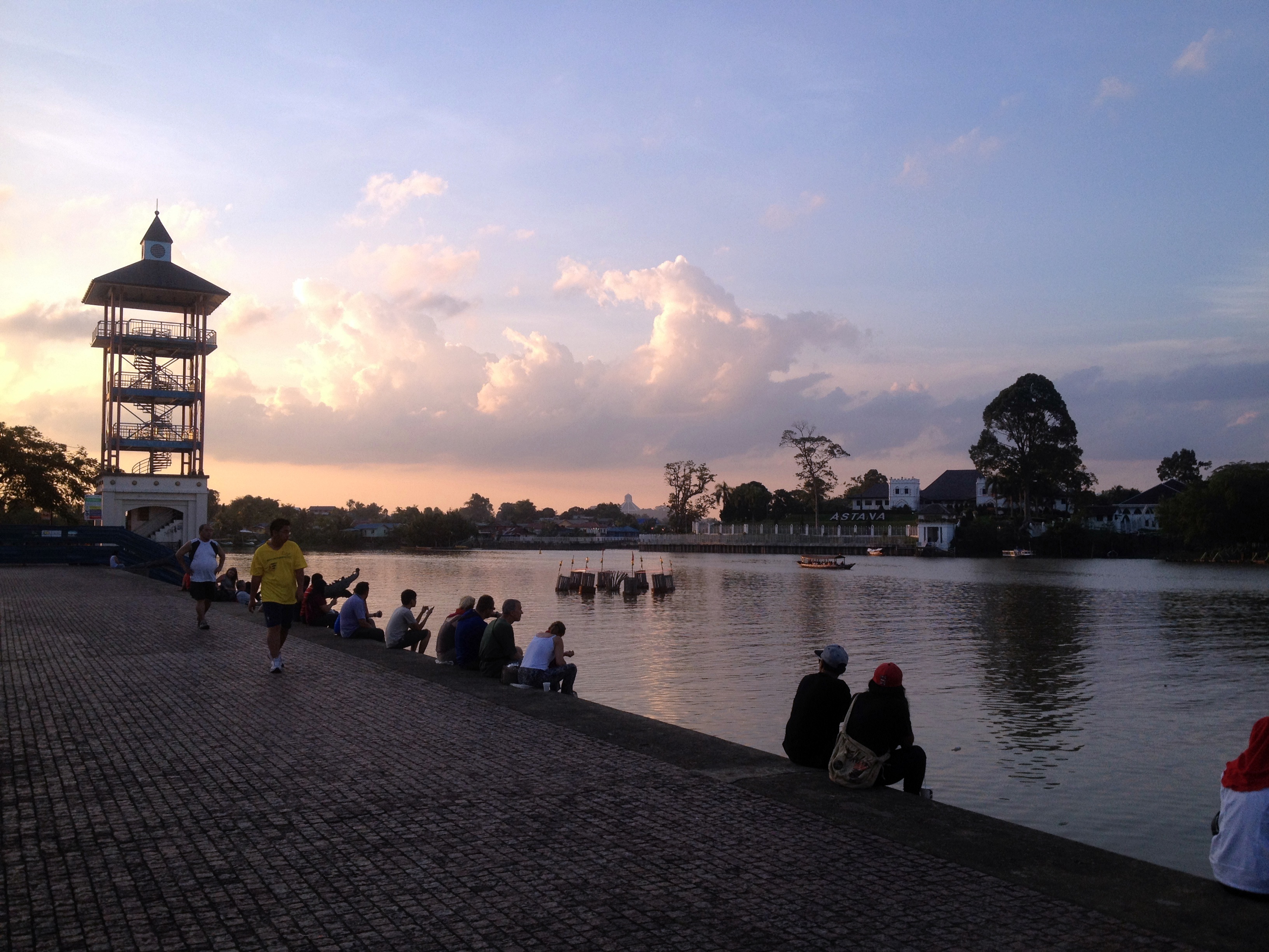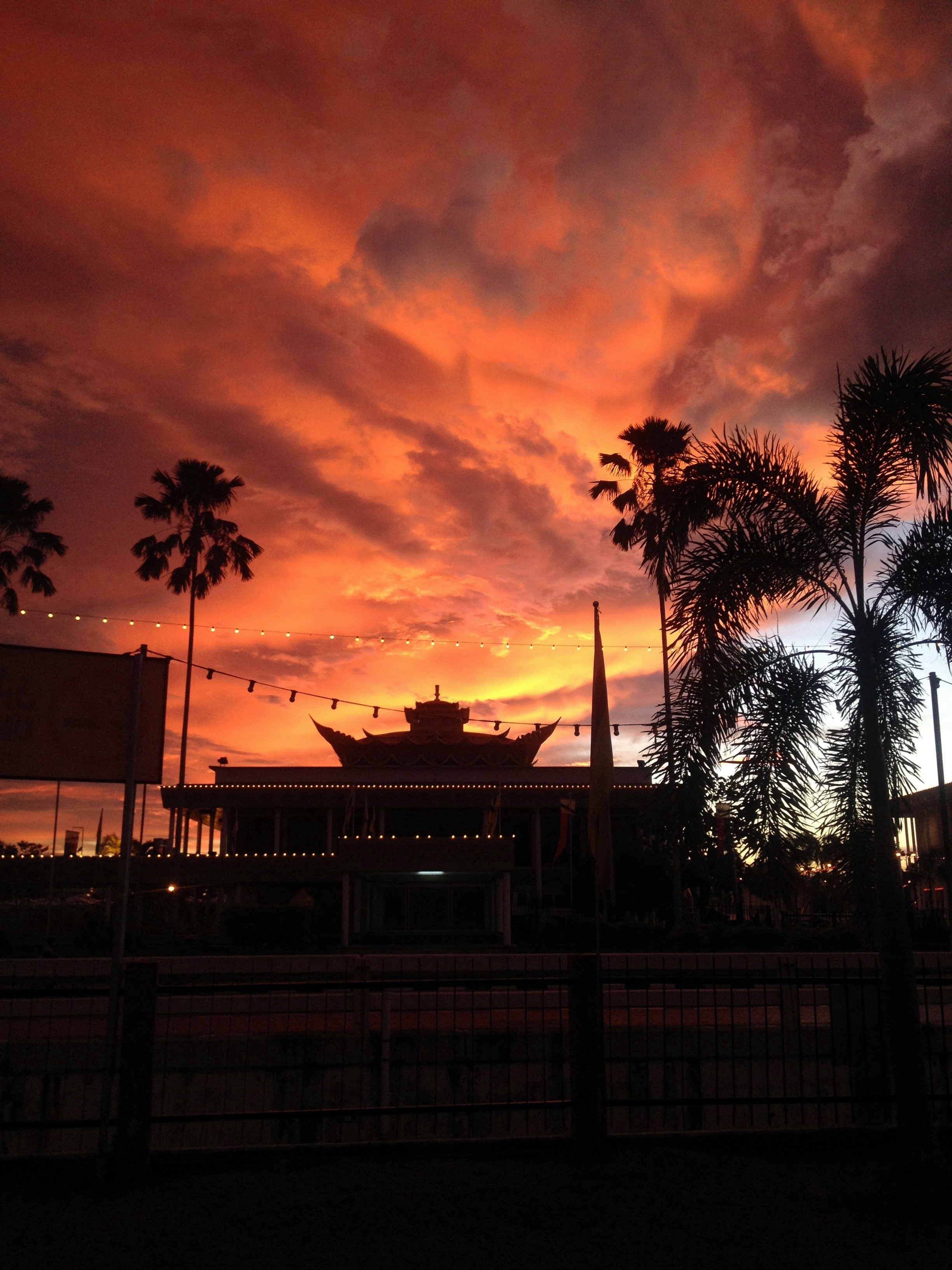 When I arrived in Brunei, I tried to stay at a youth hostel recommended by Lonely Planet. The comments said that sometimes the staff was away but just to wait. I arrived at 5:00 PM, and some people said the guy would be back by 7:00 PM. I waited, and he was a no show. At 7:45 PM I decided I needed to find a different place to sleep. I found one and met two girls (one from Singapore and one from Japan). Brunei is hugely an Islamic country, and there were some very beautiful mosques. I saw a nice sunset and walked along the riverfront. Many of the people lived in a large water village across the river. Everyone was very friendly to me. The women were completely covered except their face, and I felt exposed walking around with my head uncovered.