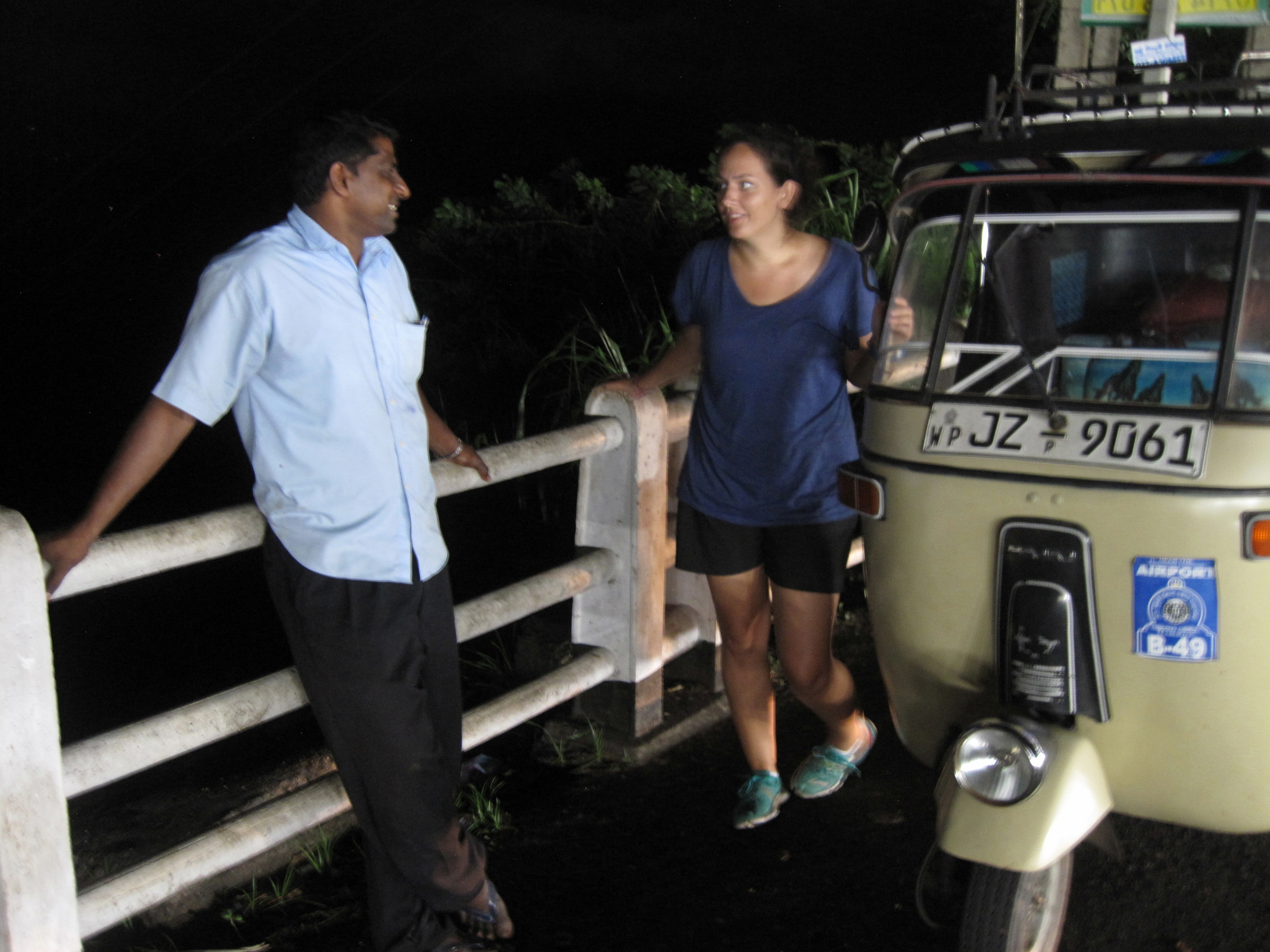On the flight from the Maldives to Sri Lanka, I got a surprise upgrade to Business Class, Seat 1A. It made me in a great mood to start my Sri Lankan adventure. Jenna and I arrived in Colombo late evening, and negotiated with the tuk tuk to take us to the Colombo train station, so that we could immediately transfer by bus or train to the town of Kandy (approximately three hours away). Our tuk tuk driver was friendly and chatty, and it was a pleasant night out. He kept trying to get us to allow him to take us to Kandy, but we kept refusing. That’s a long ways for a tuk tuk. After probably seven times of us declining him, he had the price so low we started to consider it. He guaranteed we’d be there in three hours, telling us that by the time we transferred it would be much later the other way. Given the fact that we liked him, it was a good price, the wind in the face felt nice, and there was a picture of Jesus plastered across the back of his tuk tuk, we took him up on his offer as long as he was safe. Along the way, he pointed things out to us in the light of the full moon. He told us he was a retired Sri Lankan military man, and by his size I didn’t second guess that. On one of the stops, we met a man that tried to be my Facebook friend and give us free avocados. Along the way, Jenna found a place in the Lonely Planet for us to sleep in Kandy, and I called to book it.