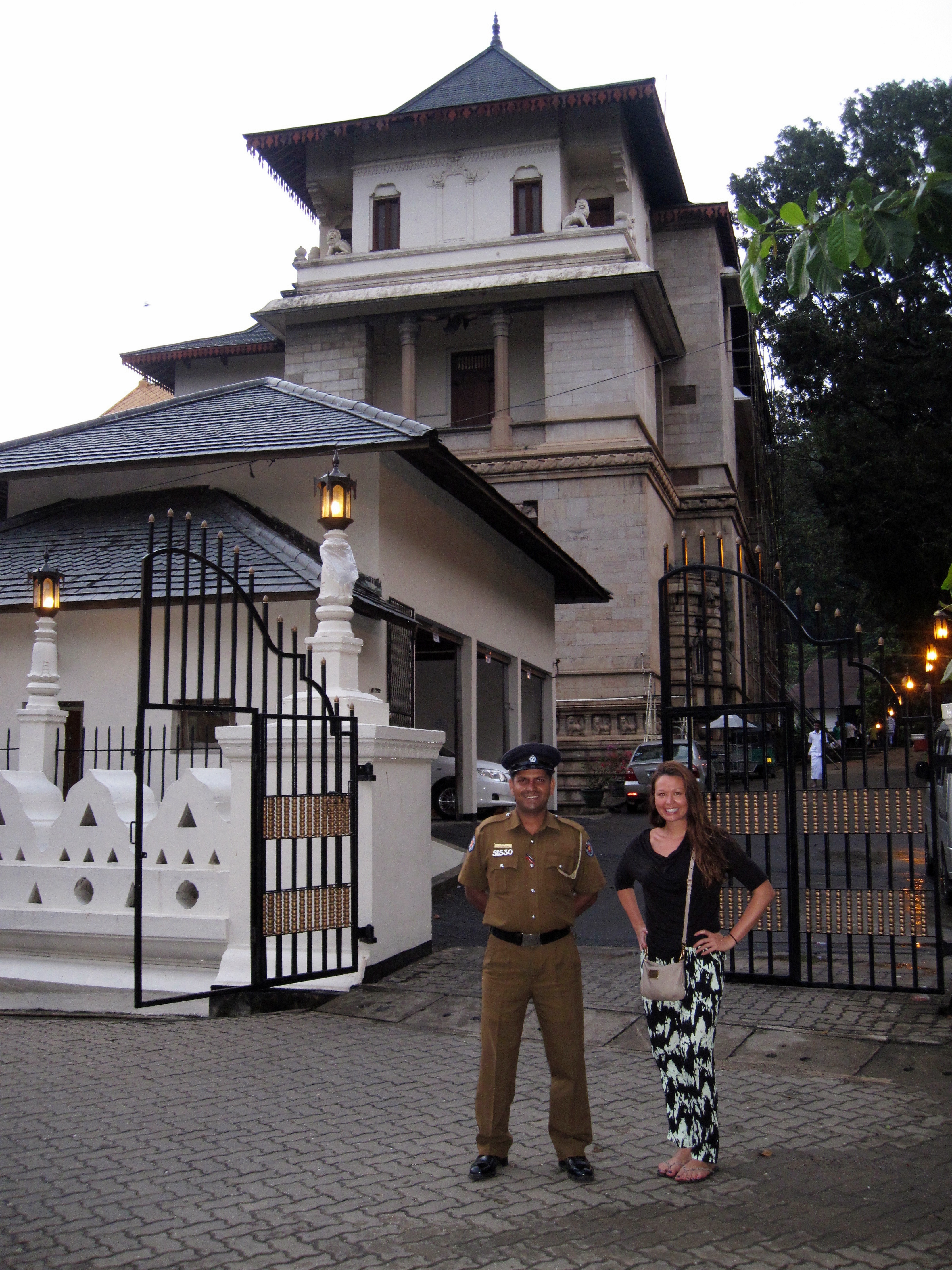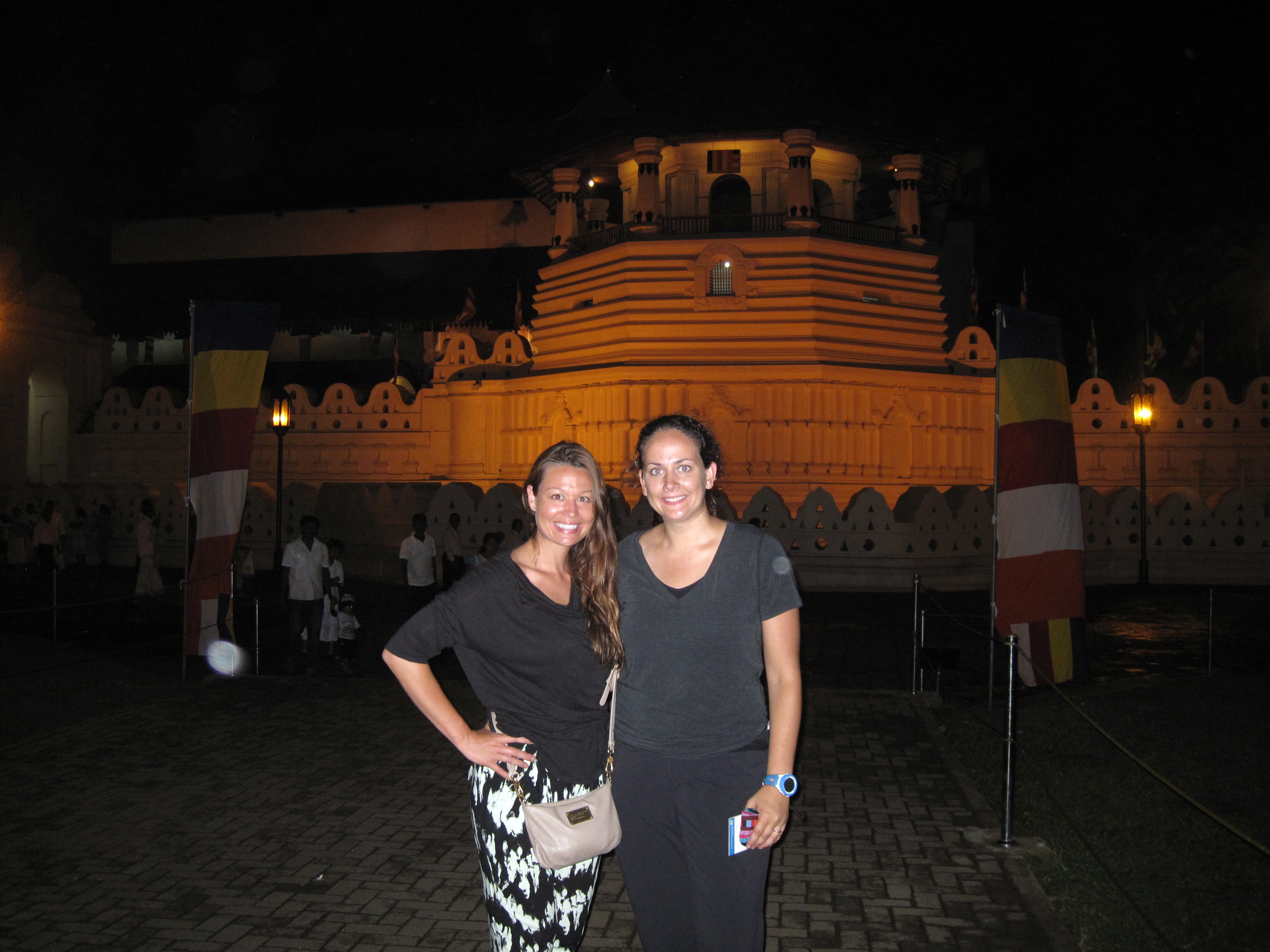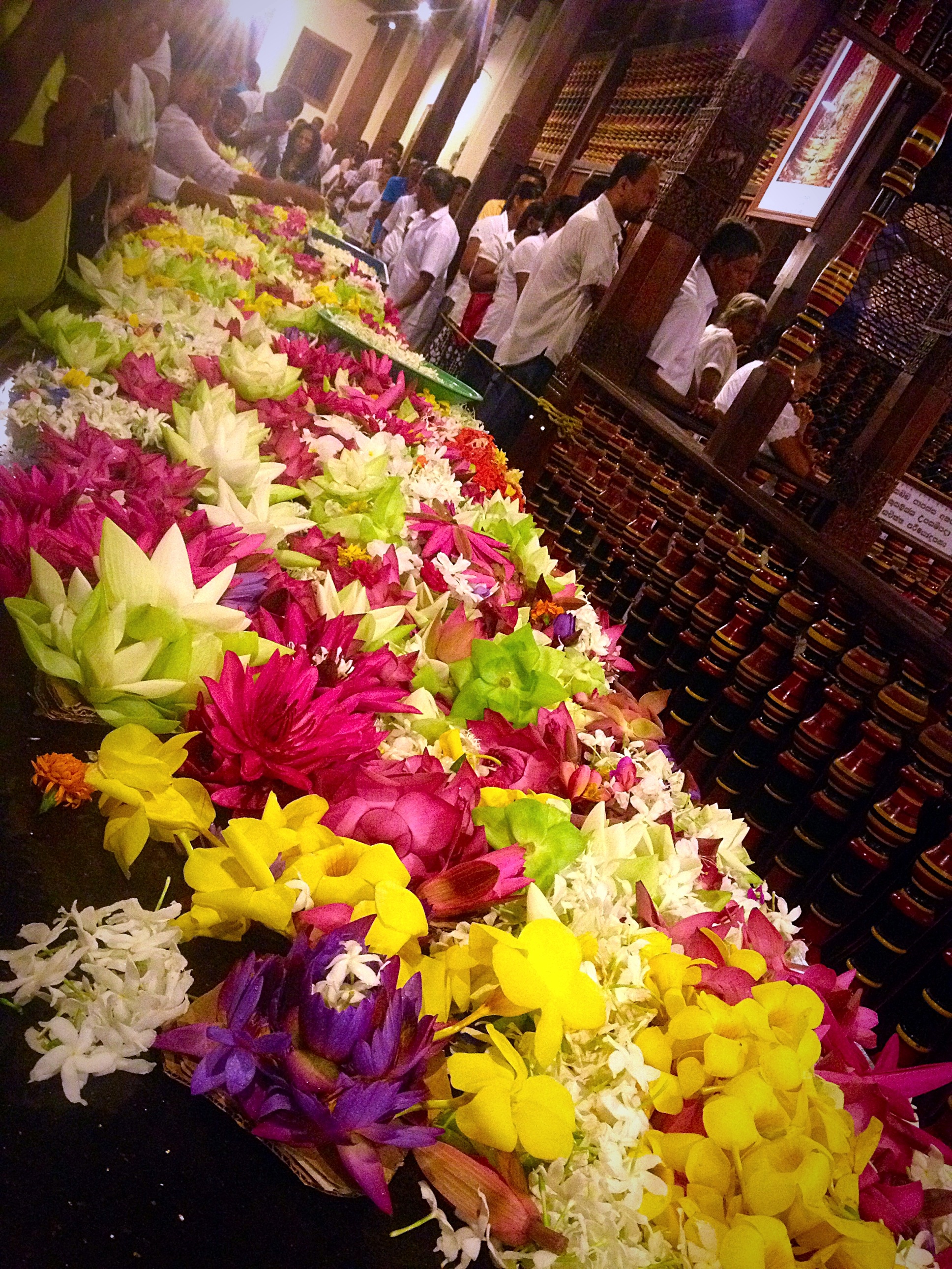 Our place called Lakshmi Guest House in Kandy was up on the hill overlooking the lake. The owner, his wife, and his twin girls were very friendly, and the place was decent. When he found out where I lived, he asked if I lived on the Missouri or Kansas side which completely surprised me. At the look of my shock, he said, “Go Jayhawks!” and then told me he studied nursing at the University of Kansas a few years prior. He returned to Sri Lanka and decided to open a hotel because he said nursing in Sri Lanka wouldn’t provide for his family. We had a breakfast of tea, an omelet, and coconut roti with onions while we sat on the balcony overlooking the town. While in Kandy, we visited the Botanical Gardens, walked around the lake, a tea factory (not worth it), and a spice garden (definitely not worth it, just a ploy to get you to buy stuff). The Botanical Gardens were nice, although we hit some rain. At our hotel, we met a friend named Peter from Washington DC. He was traveling alone, so he joined us. We made our way to visit some Kandian dancing, but got caught in the rain again. We stepped into a place for dinner, and ended up missing a good chunk of the show (although we made it in time for the fire walking). After that we made to Kandy’s most popular temple, Temple of the Sacred Tooth Relic. Locals flocked to the temple for the evening ceremony dressed from head to toe in all white. The temple is said to house Buddha’s tooth. It was extremely crowded and families brought flowers as offerings. Although the number of people made it rather unpleasant, the scene as a whole was quite beautiful—all white with flowers.