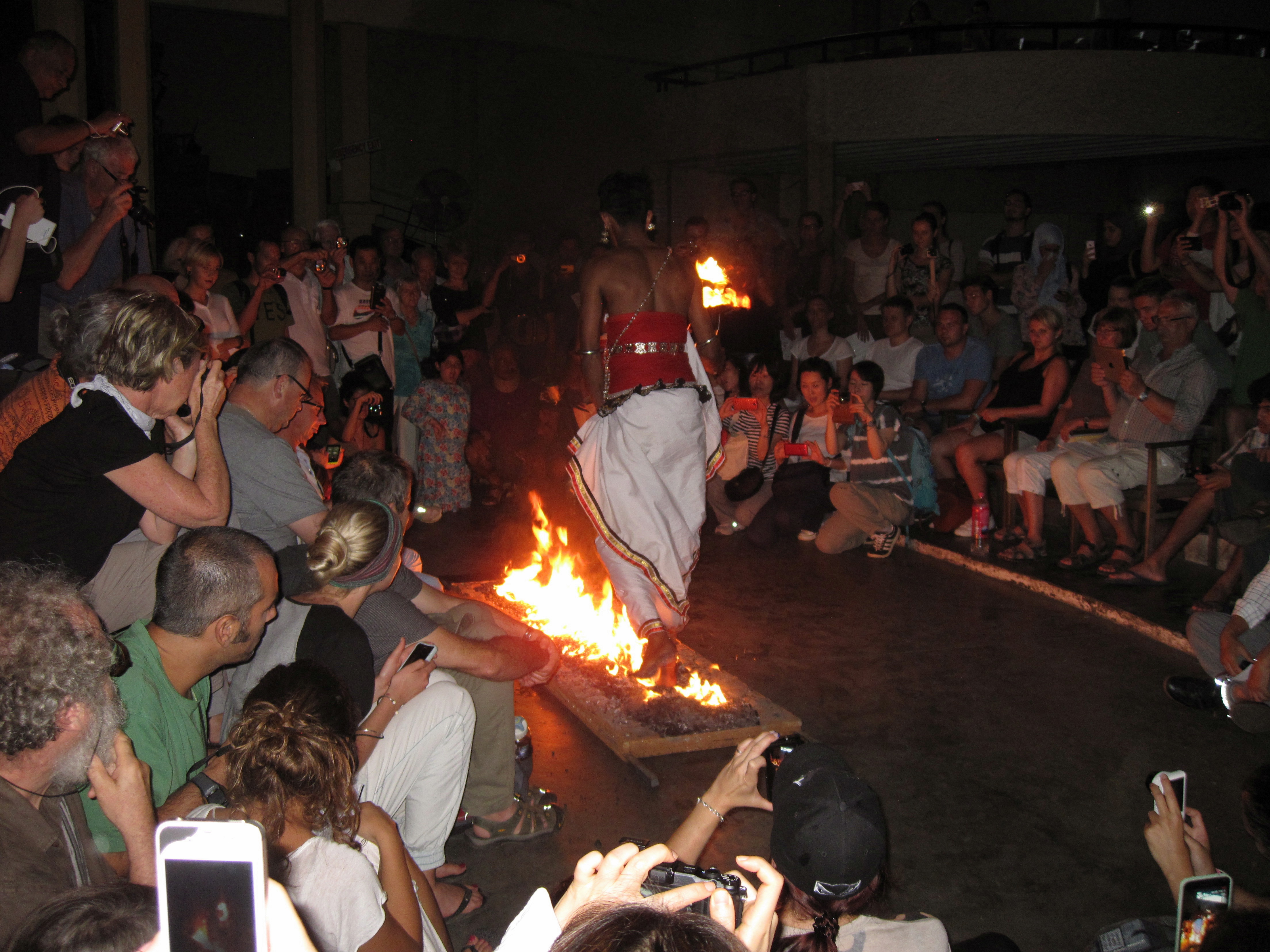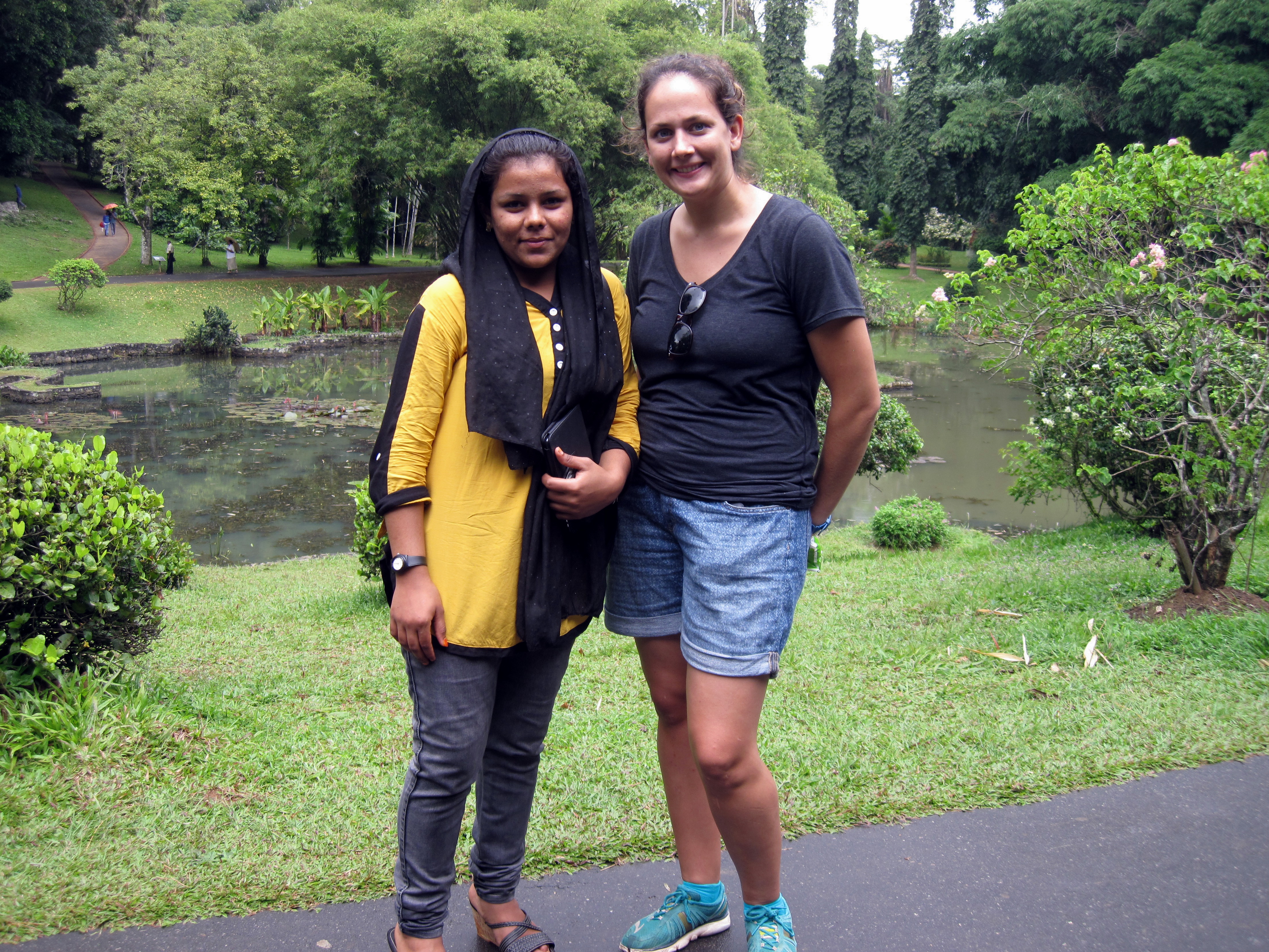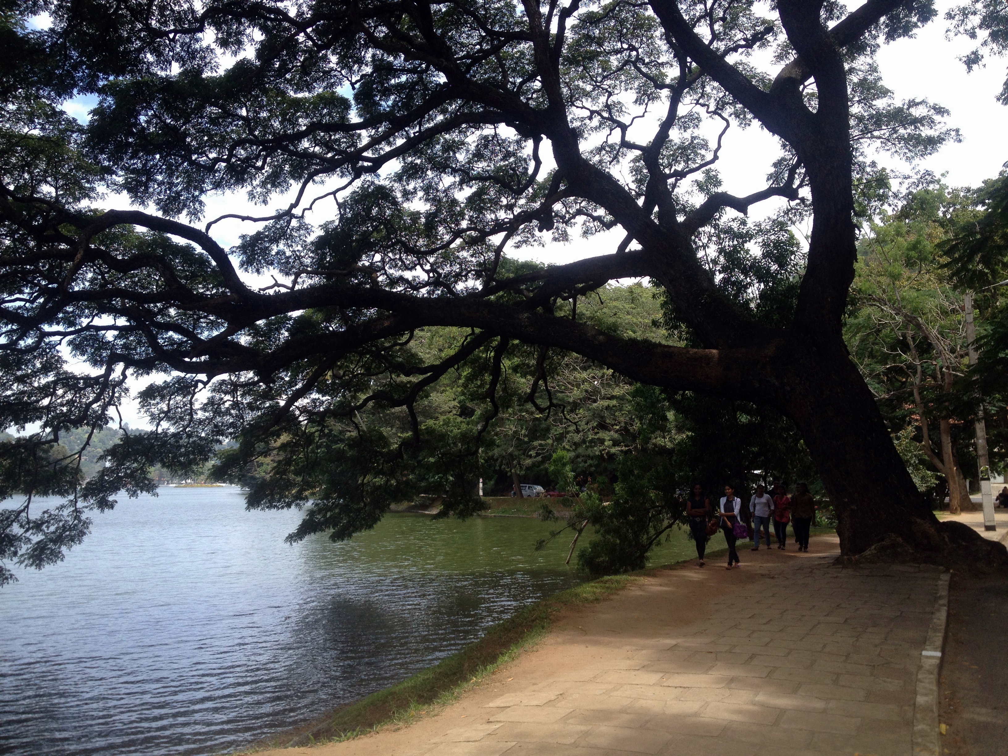 Our place called Lakshmi Guest House in Kandy was up on the hill overlooking the lake. The owner, his wife, and his twin girls were very friendly, and the place was decent. When he found out where I lived, he asked if I lived on the Missouri or Kansas side which completely surprised me. At the look of my shock, he said, “Go Jayhawks!” and then told me he studied nursing at the University of Kansas a few years prior. He returned to Sri Lanka and decided to open a hotel because he said nursing in Sri Lanka wouldn’t provide for his family. We had a breakfast of tea, an omelet, and coconut roti with onions while we sat on the balcony overlooking the town. While in Kandy, we visited the Botanical Gardens, walked around the lake, a tea factory (not worth it), and a spice garden (definitely not worth it, just a ploy to get you to buy stuff). The Botanical Gardens were nice, although we hit some rain. At our hotel, we met a friend named Peter from Washington DC. He was traveling alone, so he joined us. We made our way to visit some Kandian dancing, but got caught in the rain again. We stepped into a place for dinner, and ended up missing a good chunk of the show (although we made it in time for the fire walking). After that we made to Kandy’s most popular temple, Temple of the Sacred Tooth Relic. Locals flocked to the temple for the evening ceremony dressed from head to toe in all white. The temple is said to house Buddha’s tooth. It was extremely crowded and families brought flowers as offerings. Although the number of people made it rather unpleasant, the scene as a whole was quite beautiful—all white with flowers.