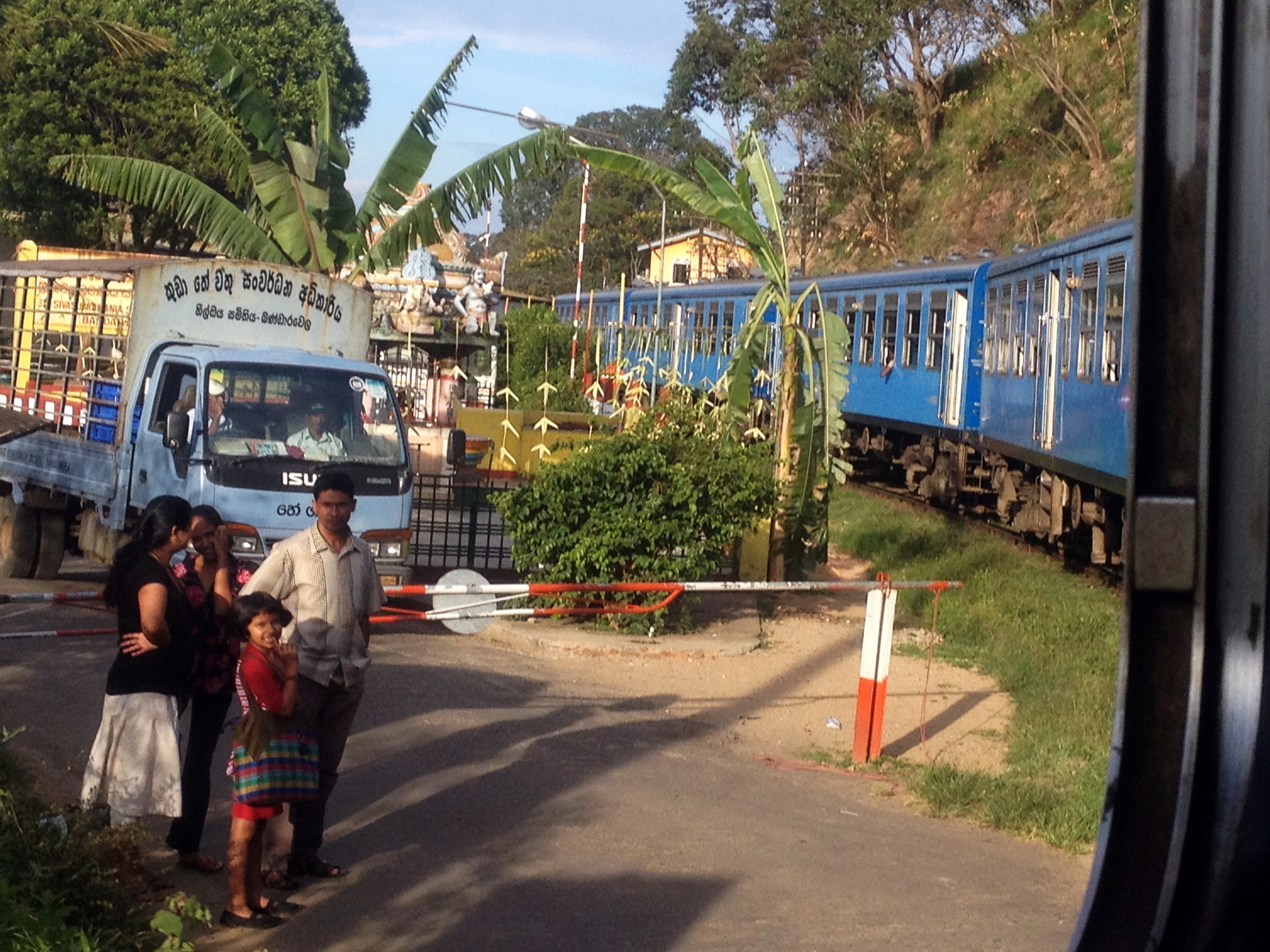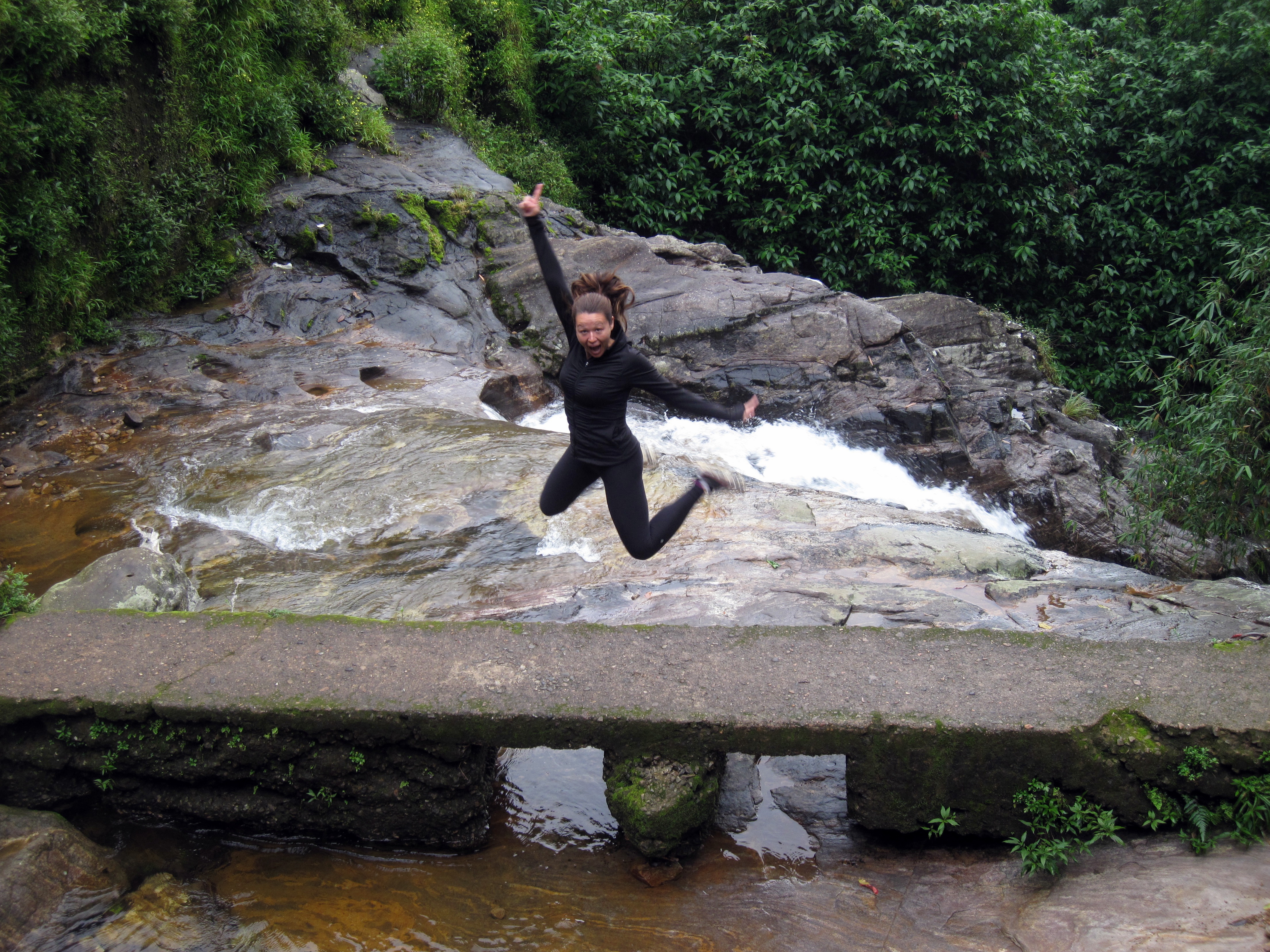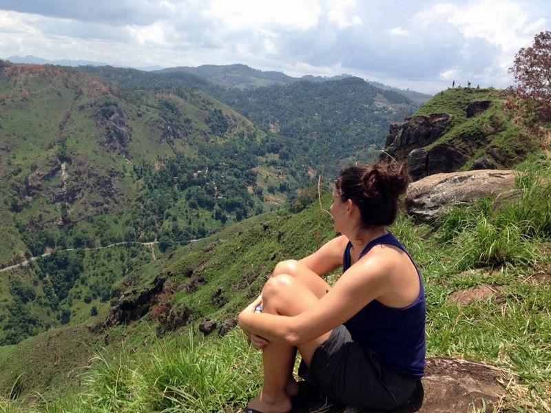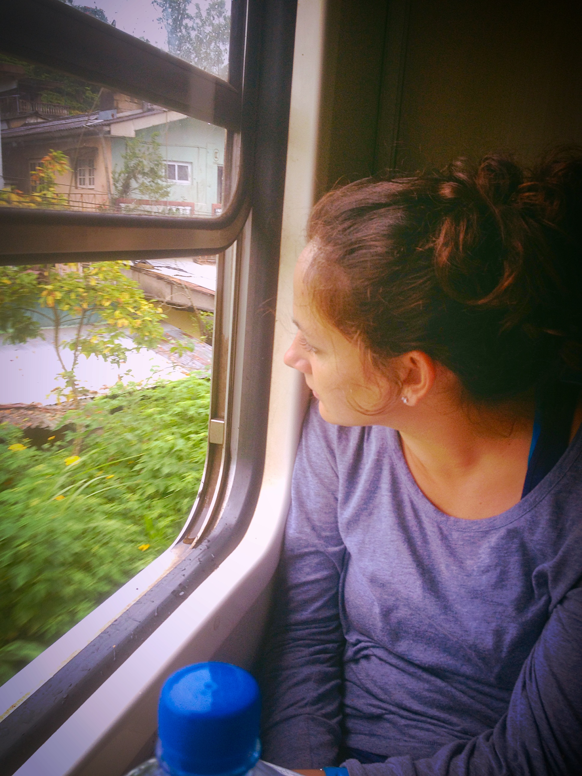 The next morning, the three of us (Jenna, Peter, and I) took the famous train through Sri Lanka’s hill country to Hatton to transfer to complete the world-known pilgrimage of Adam’s Peak. The train had the old time romantic feel, and it chugged through some jaw-dropping scenery full of tea plantations. We arrived in Hatton and transferred by minibus through more unbelievable roads to Dalhousie, the starting off point for Adam’s Peak. We found a place to place our bags and rest before starting our 2:00 AM journey up the mountain to see the sunrise. We heard the top of the mountain gets extremely cold, so we packed warm gear, rain gear, and flashlights and headed out to the darkness and rain. Call us crazy, but everything I read said it was totally worth it. Some Christians and Muslims believe that Adam’s Peak is said to be the place where Adam first stepped foot when he was thrown out of the Garden of Eden (many connecting the idea that Sri Lanka was the original Eden, which I could definitely believe after my visit (source: Wikipedia)). The sunrise was supposed to happen at 6:00 AM, so we had four hours to get there. I was expecting a slow and pleasant climb to the top with some flat spots. I was wrong. It was straight up, all stairs. They were well built and safe, but they were straight up…the whole way. Alongside me I had Jenna, a girl that runs everyday (even on our trip), and Peter, a marathon runner. Next to them, my body decided to reject me and non-existent knee pain decided to remind me that it was still a part of my all too close past. About an hour and a half into the stairs, I had them go on without me because I could tell they were still full of energy, and I wanted to slow my pace. After much insisting on my part, they finally skipped ahead. I slowed my pace, and I felt much better. I knew I still had time to get to the top, but I had no idea how far away I was because it was still dark and extremely cloudy. I could probably only see about ten feet in front of me. I met people along the way, some struggling like me, and some full of life like Jenna and Peter. Hikers that were better prepared would tell me how far I had left, although after the trek I don’t think I believed them. I made it to the top by 5:30 AM with plenty of time to see the sunrise. I found out later that it was 5,200 steps to the top and double that to go back down. The distance isn’t far (14 kilometers round trip from Dalhousie), but oh the steps… As told, the top was freezing. I hadn’t noticed it was cold until I stopped moving, and it was extremely wet on top of the mountain because we were literally in a cloud. Aladdin sure made clouds look more enjoyable. So we waited for the famous sunrise and triangle shadow that appears (our reward), and we waited, and waited…6:00 AM, 6:30 AM, 6:40 AM. Nothing. For about ten seconds, we saw one hole of sky, and the entire group squealed thinking we would see the sun…but nothing. I heard a guide next to us saying he’d done the trek 38 times and only not seen the sunrise for three of the times. That made me feel loads better. The journey down was a completely different type of pain. It was now the wobbly legs and knee pain, but it was so much easier on the heart rate. However, it was still 5,200 steps down. Jenna and Peter ran ahead and got us breakfast ordered at the hotel. I wobbled in after them thinking to myself that I better have lost a few pounds after that workout. It’s the sense of accomplishment that makes it all worth it, and I guess we’re officially pilgrims now. It ended up being a seven hour journey round trip (for me), including quite awhile waiting at the top. We showered and rested for about an hour before taking the minibus back to the train station. It was another wonderful train ride to Ella through tea plantations, smiling people, lakes, and waterfalls.
