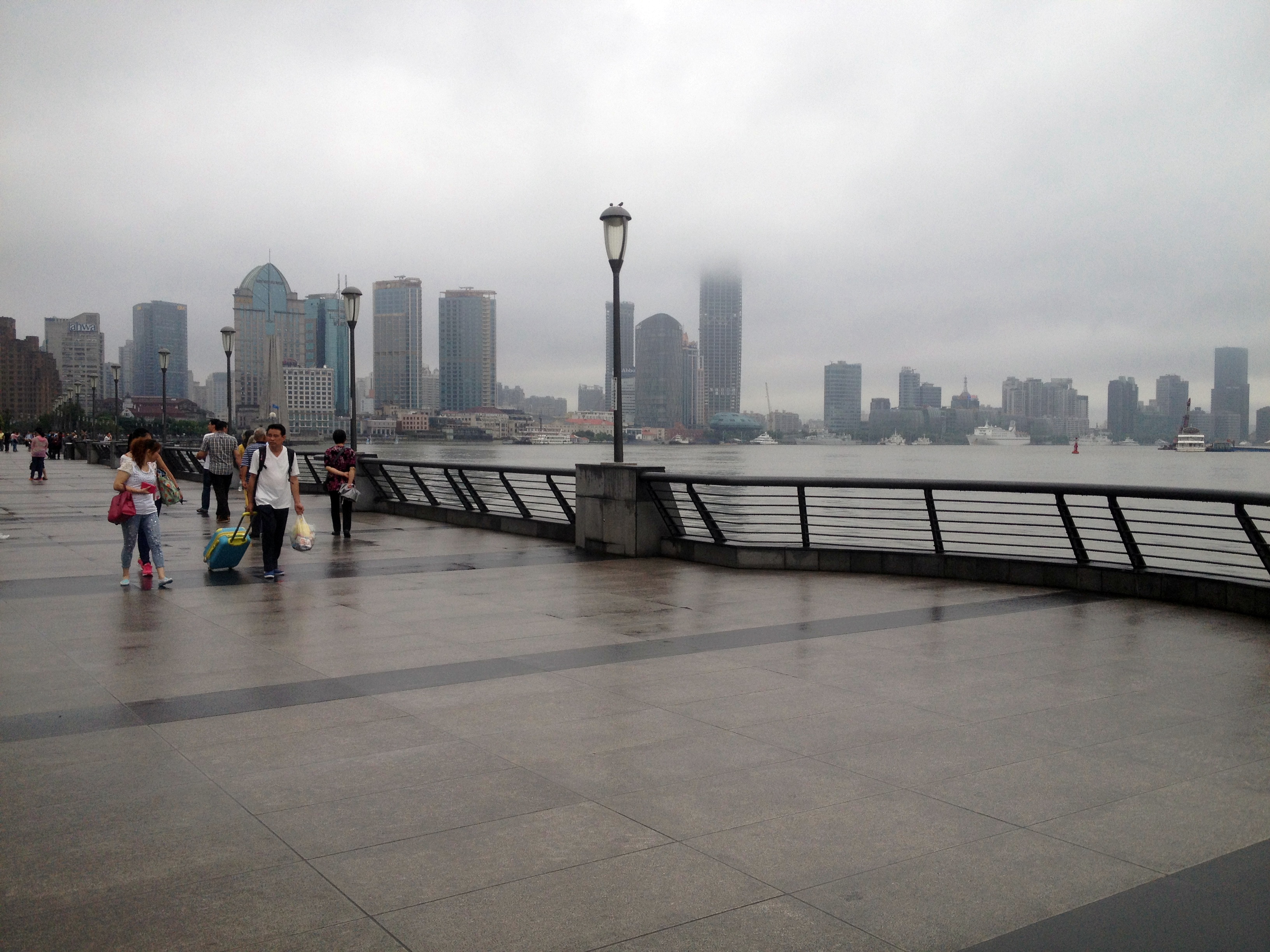 It was rainy for my first day out, but my limited time forced me to go out into the city. A cab picked me up and drove me around for awhile. I had it drop me off on The Bund (Wai Tan), a waterfront area in central Shanghai located on Zhongshan Road. It runs along the bank of Huangpu River facing Pudong. It’s one of the most famous tourist destinations in Shanghai, and even in the misty rainy weather, it was still awesome. The buildings across the river were so unique and modern, and it made for an impressive skyline. The other side of The Bund was lined with dozens of historical buildings. The drastic difference in the two sides created a nice contrast.