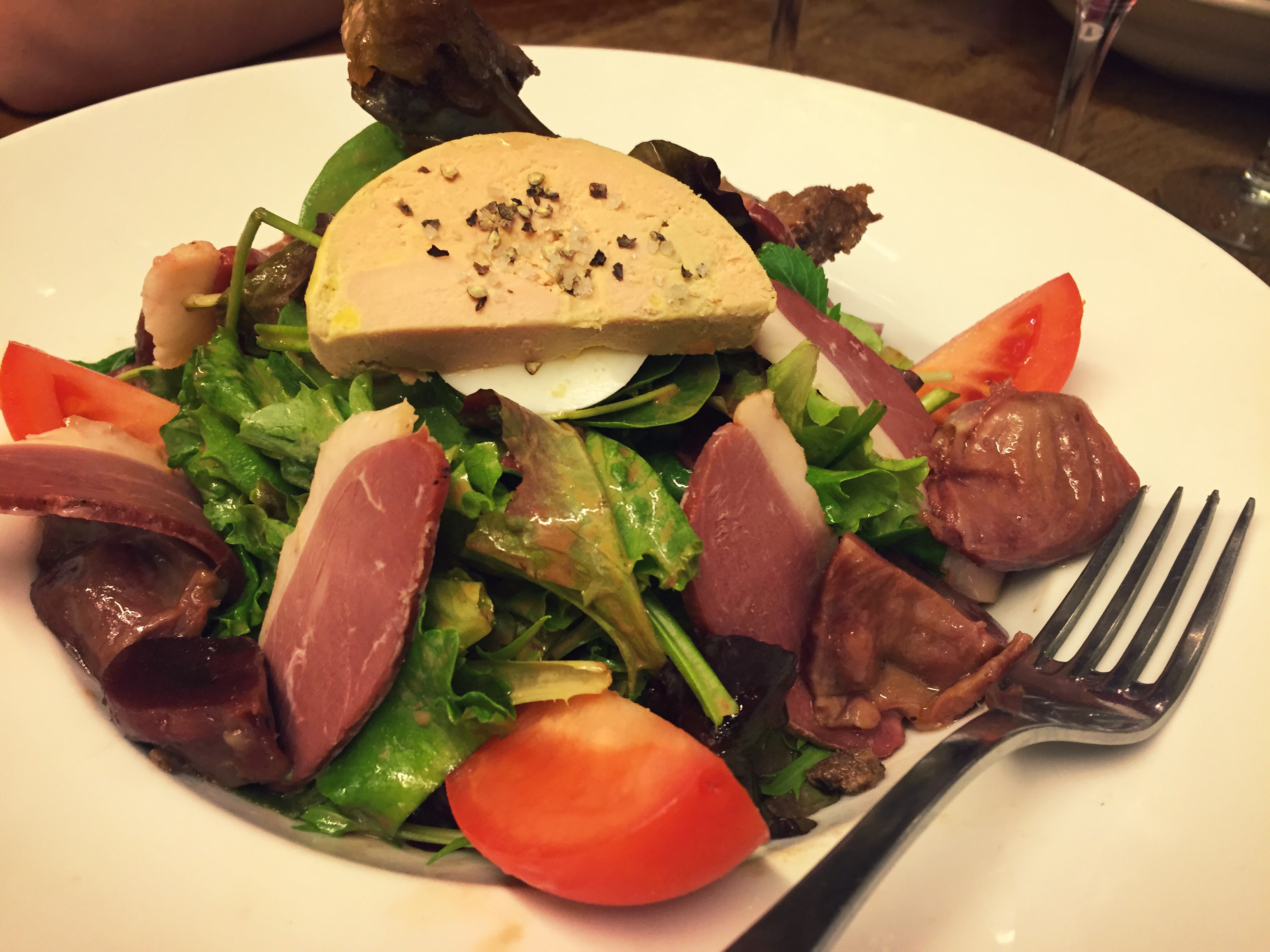 Our first food stop was just down the street from our apartment: Le Bistrot des Colonnes. Most of us got some light salads to hold us over until dinner.