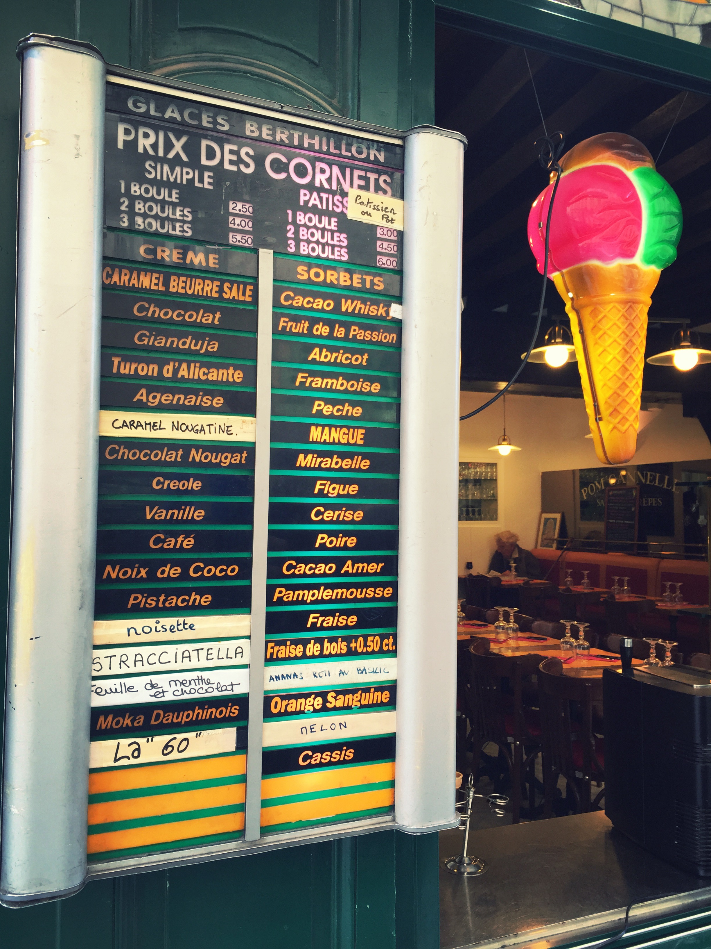Michael and Allison headed to the race early. Jacob, Mike Sr., and I enjoyed some coffee and croissants, and we mapped our plan for how and where we wanted to be stationed to see our runners go by. We saw them once at mile marker three, and they stopped and took time for a picture with us. It’s really an impressive sight to see all the runners go by, all countries, all shapes and sizes, all with the same goal. What a great race route as well—through some of the most iconic buildings and landmarks in the world. We saw them two more times, and we enjoyed holding a giant banner, and finding names on jerseys and cheering specifically for that person. Some people loved it, and some people were so confused. While they were burning calories, we stopped off for some ice cream at L’Ile Flottante, Berthillon. We met them at the finish line, and cheered as they both successfully completed the Paris Marathon. Michael said it was so hard, and Allison encouraged him and kept him going the whole way. I’m proud of Michael for completing his first marathon. It took a lot of training during the middle of his busiest season at work. We rested back at the apartment for awhile, enjoying some of the cheese and meat we got the previous day. For dinner, Michael decided to stay in while the rest of us went out for some pasta. I love Paris. It was awesome to think that we were only three days into our eleven day trip.