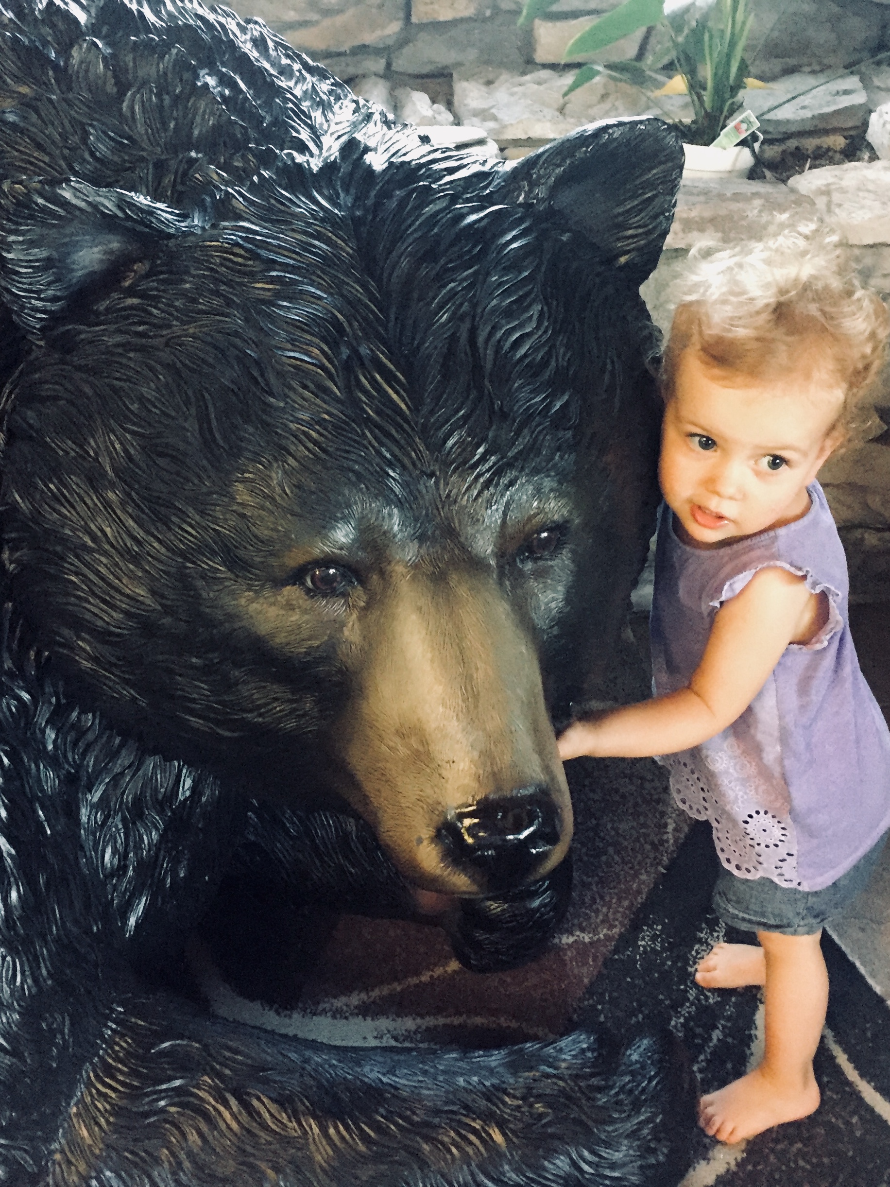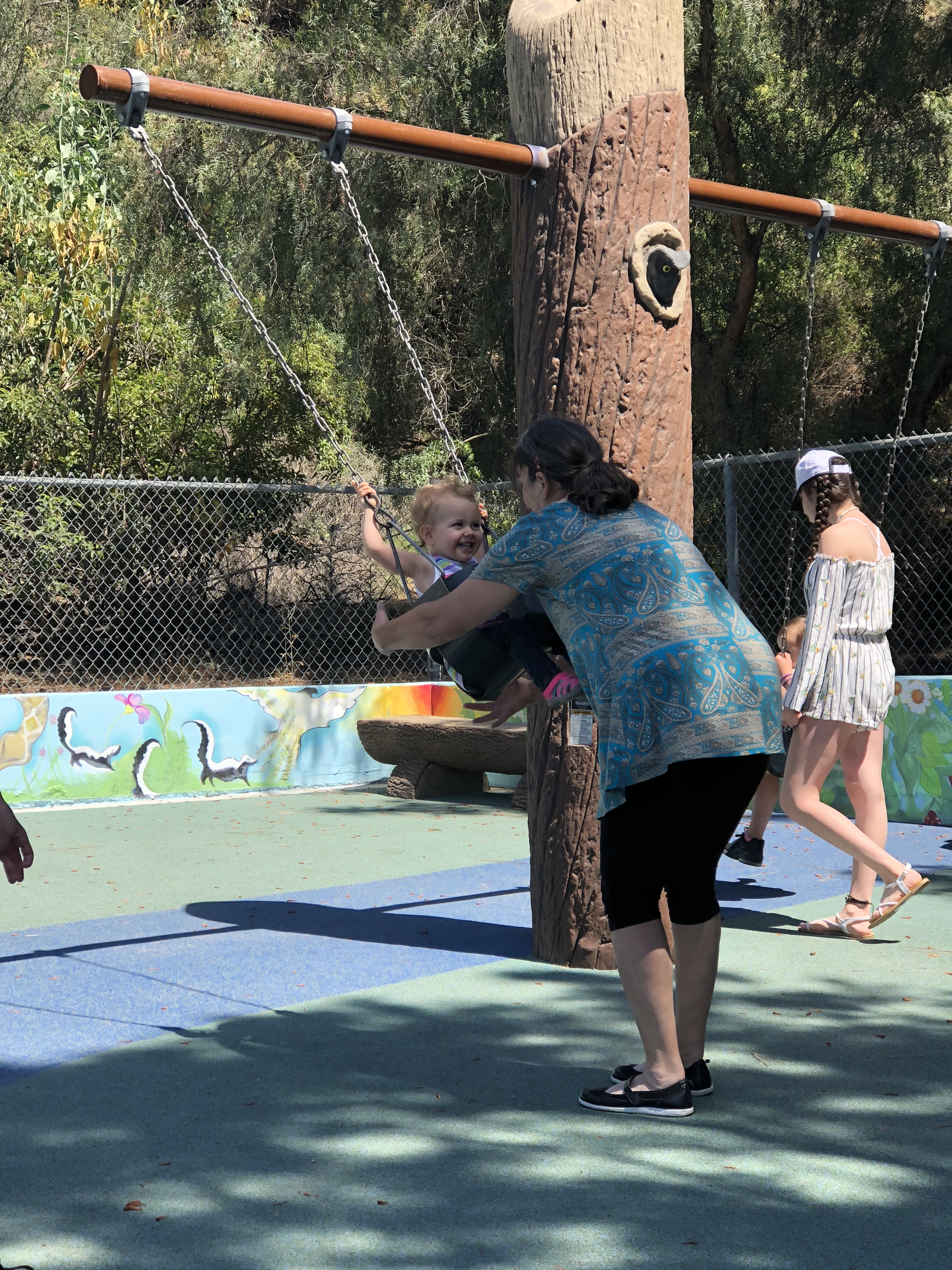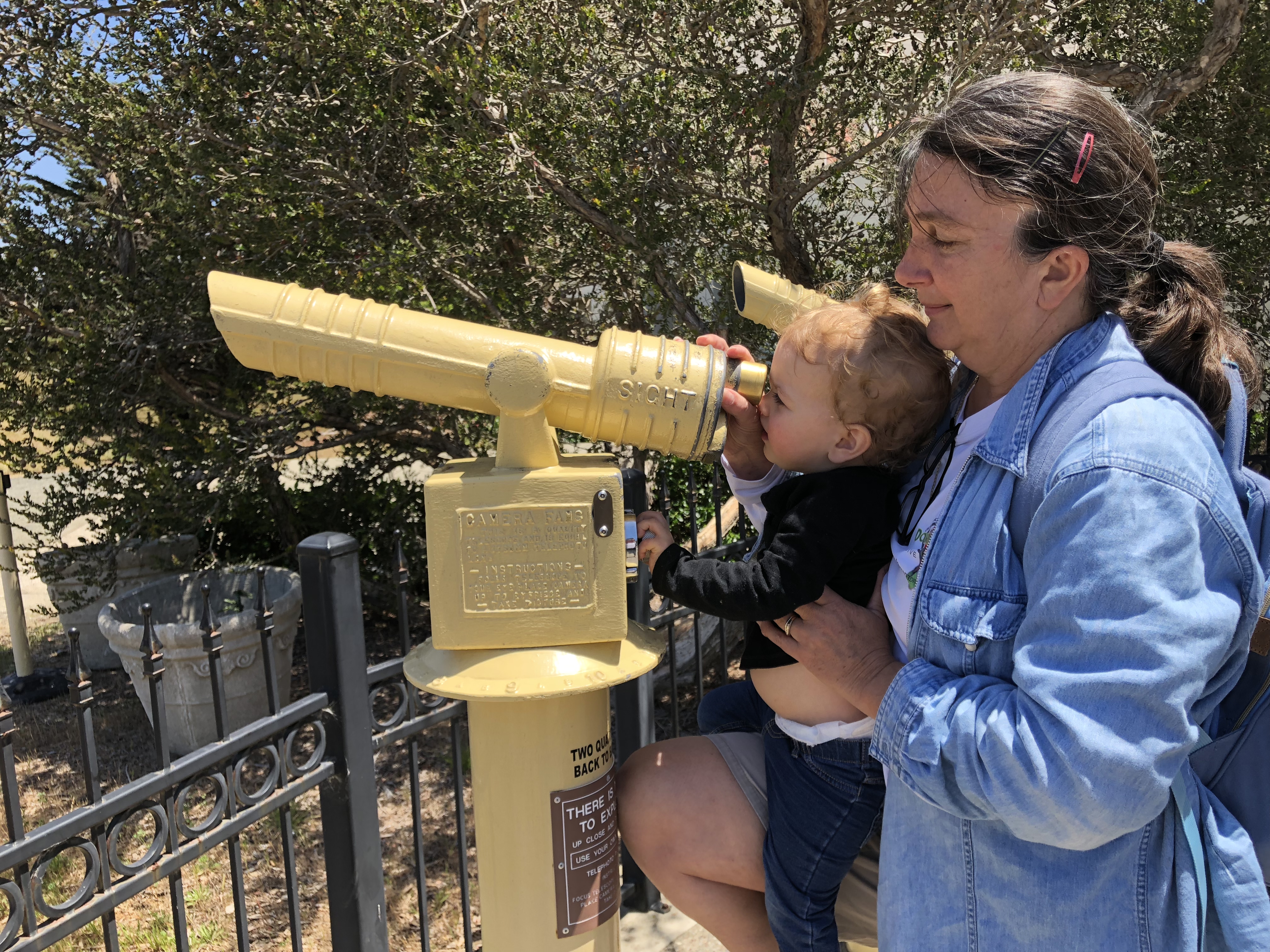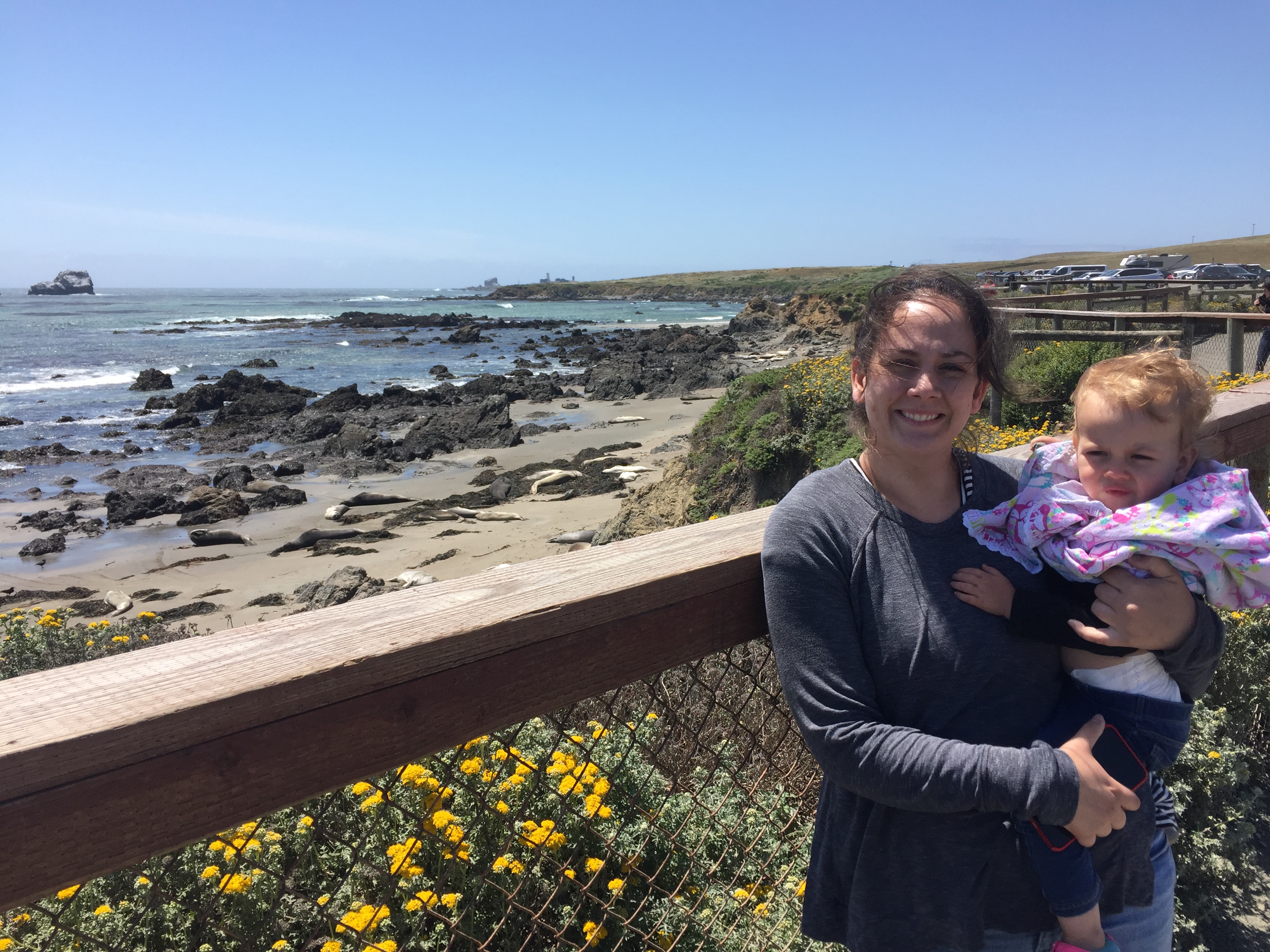 The next morning, we started out with breakfast at Denny’s across the street because it was included in our hotel cost. We got back on the road and continued along the coastline, driving through Santa Barbara, which made me think of the show Psych. We continued through Santa Maria, driving through Morro Bay, Sambria, and San Simeon. Everyone told us to drive up to see Hearst Castle, a 20th-century mansion that is a National Historic Landmark. It was the residence for a newspaper giant William Randolph Hearst between 1919 and 1947. It is now a California State Park. Read more here: https://en.wikipedia.org/wiki/Hearst_Castle. Mom and I walked around the visitor’s center. You could see the castle from the road, but it was very far away, so we drove up to the Visitor’s Center. We walked around reading everything for a while, and tickets to go on a bus were a several hours wait with a lot of stairs (and not even to the main part). We decided to pass (I’ll come back someday), and we got back on the road. It just wasn’t the right time for the extremely long tour with a baby and grandparents waiting in the car. It’s a really looks like a spectacular place. We also saw some elk and other wildlife around the area.