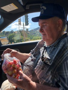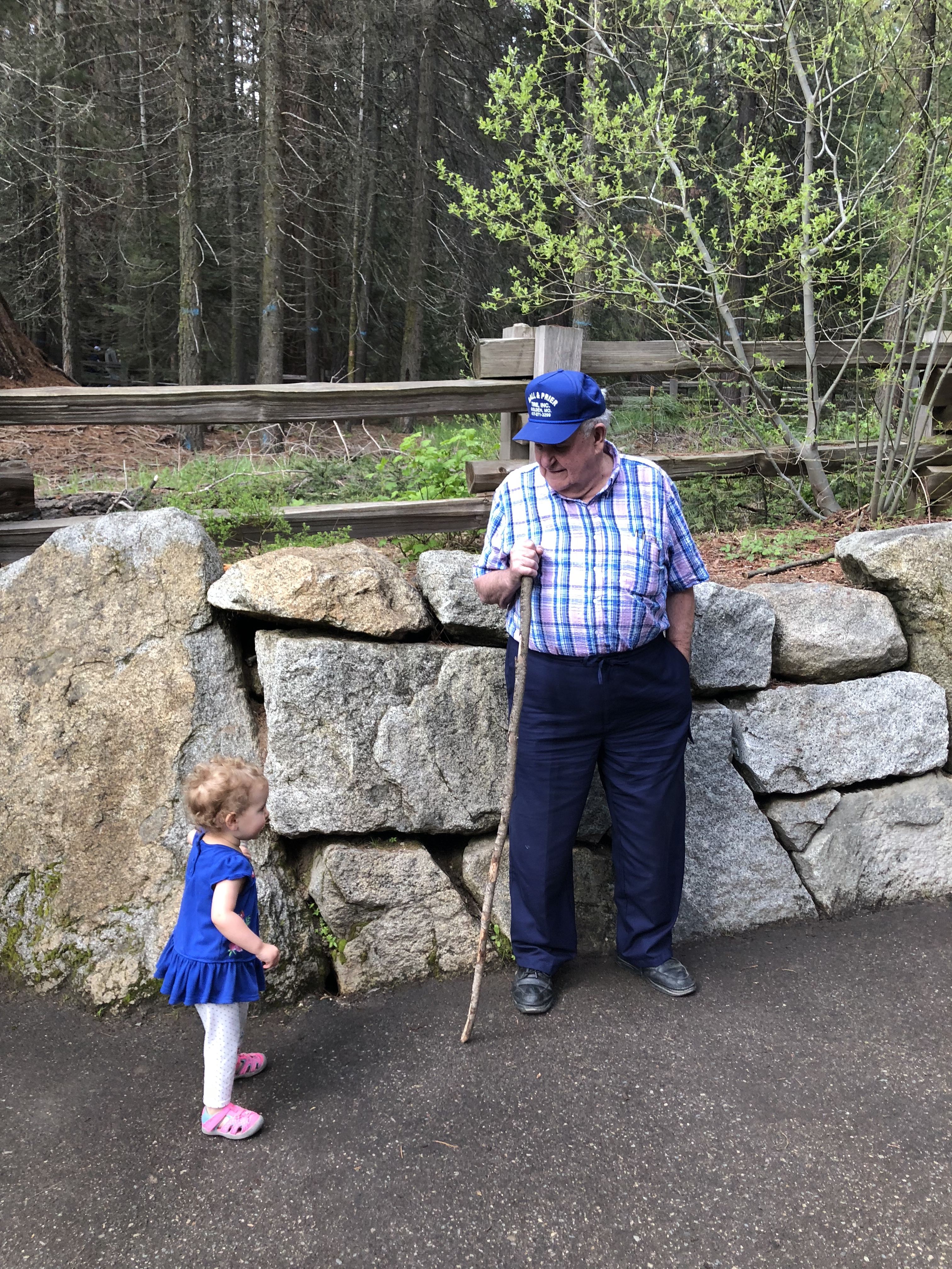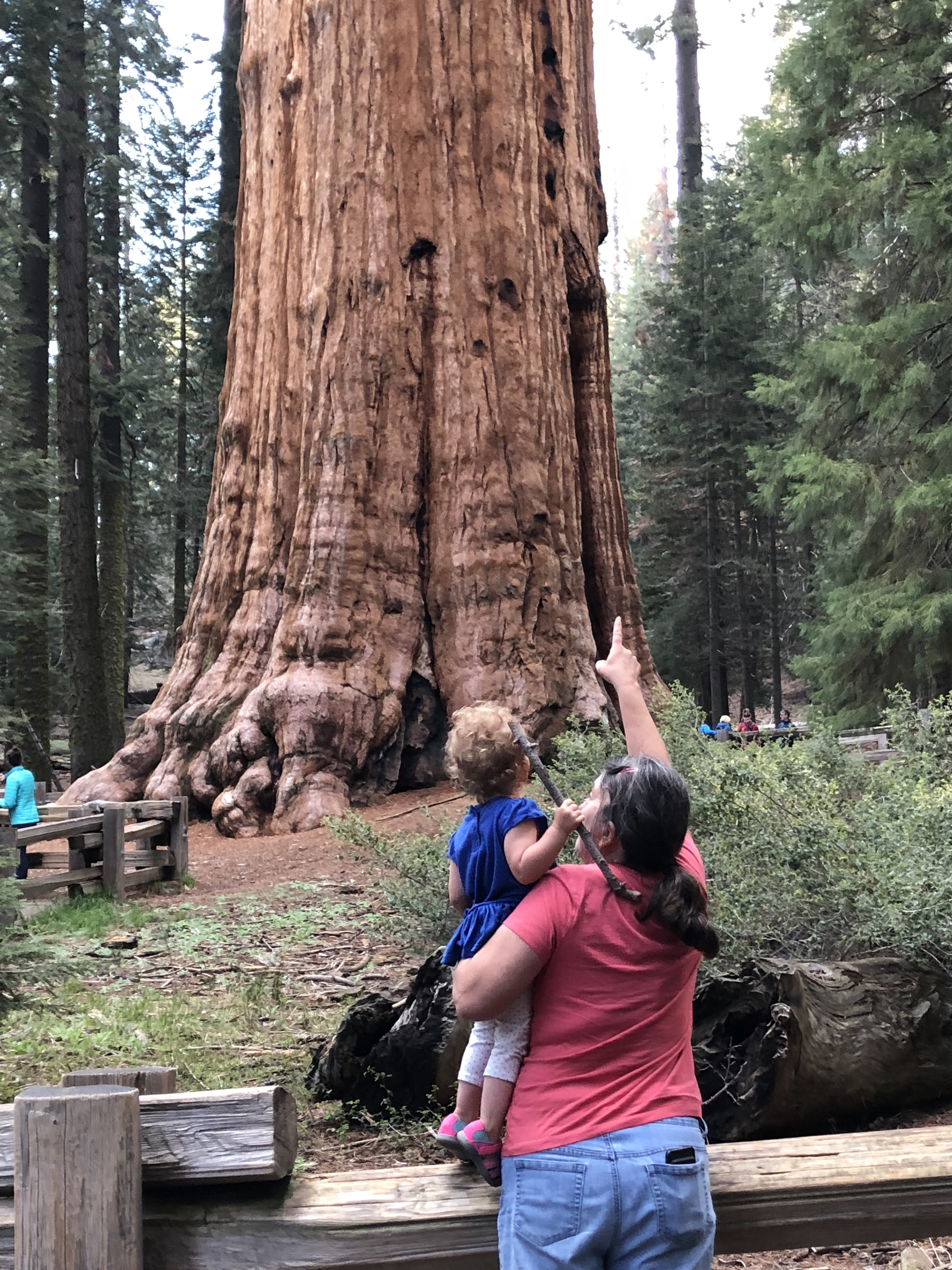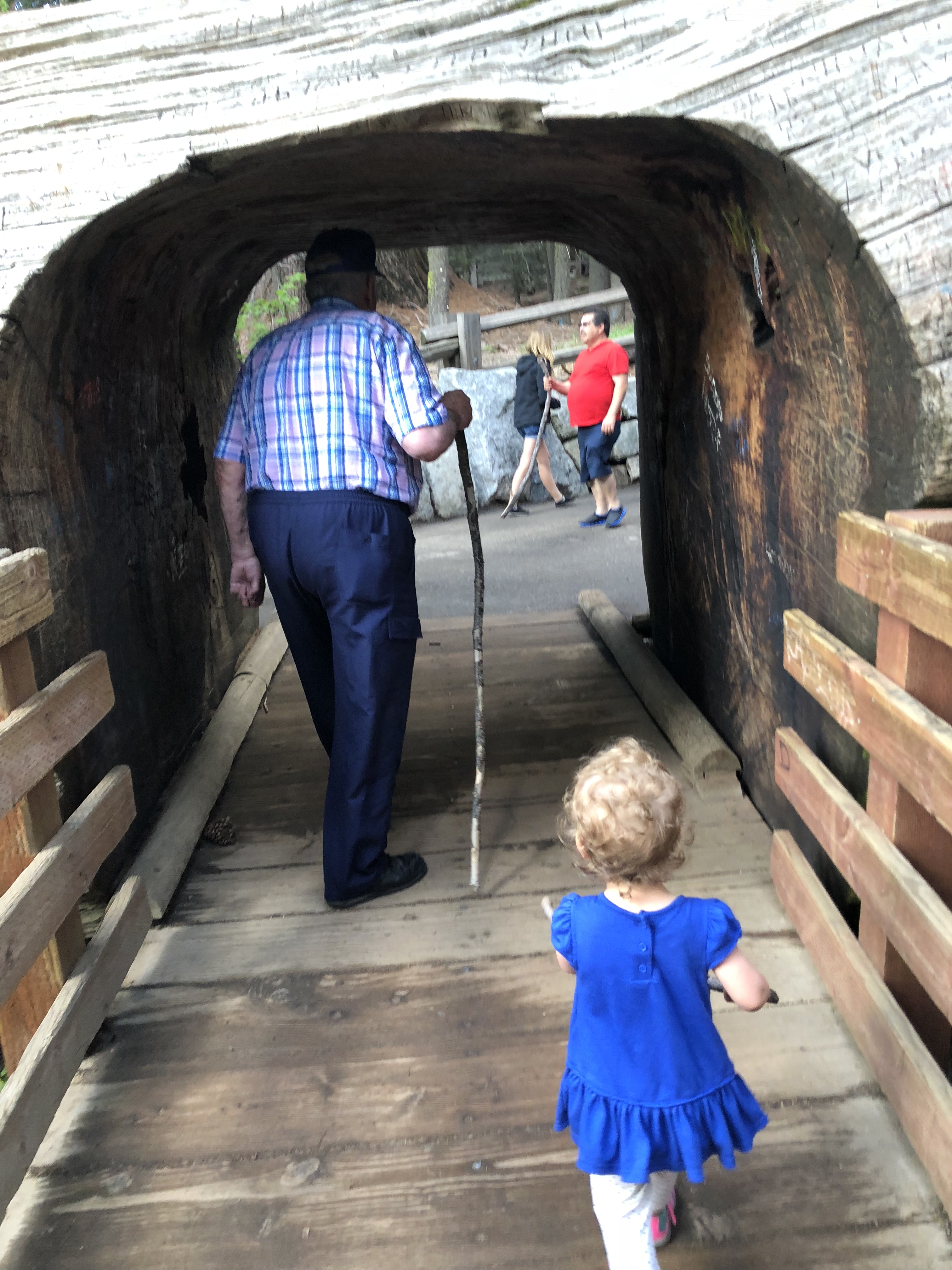 From here, we headed north along Highway 1 to enjoy more of the coastline until we hit Highway 152 to cut east across the state to get us to Fresno. It was a long somewhat boring drive, but we saw a lot of fruit orchards and stopped to get some more cherries and some other fruits. We were all pretty worn out because of all the miles we put in the last few days. We had a Chinese lunch in Fresno, and then headed south to go visit Sequoia National Park. We got back into scenic driving as we hit the mountains. I missed getting my national parks stamp because the visitor’s center closed an hour prior. We still had plenty of light to drive through the park. We stopped to see General Sherman tree, a giant sequoia that is the largest known living single-stem tree on Earth. Parking was far away, but luckily we had grandpa’s handicapped sticker. We were able to park close, and grandma and grandpa were able to get out and see the tree as well. The trees are gigantic, and make you feel so small. We finished driving through the park, and headed back to Fresno (a 1.5 hour drive) to sleep for the night.