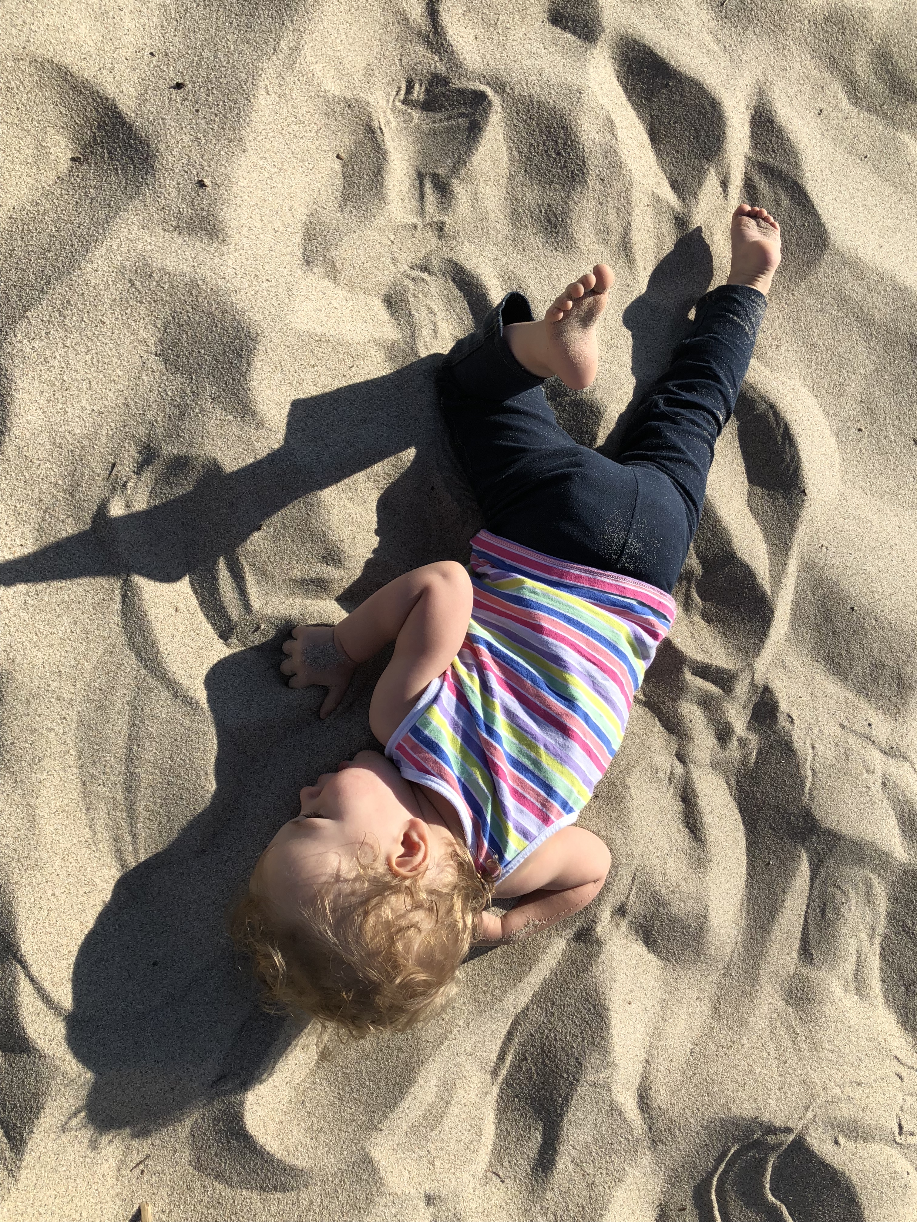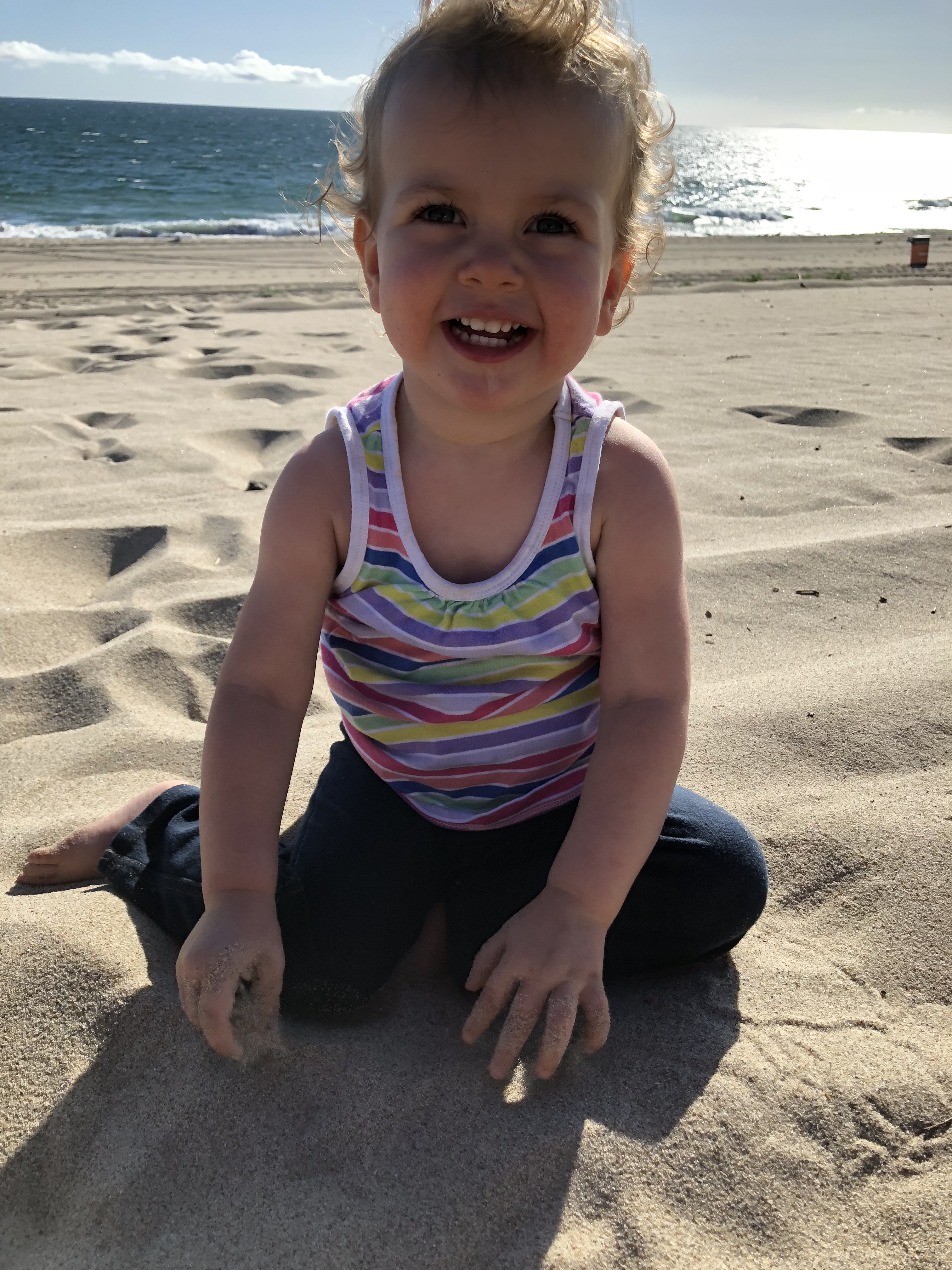It was our last day of the trip. We had a good breakfast at the hotel, and then we headed north along the coastline (and back on Highway 1) to see Point Reyes National Seashore. It was a beautiful part of the coastline, and we drove out to a point where we could walk on a beach to the ocean. It was so windy, but a beautiful place. We tried to go to Muir Woods National Monument to see some the redwood trees, but apparently you have to get your ticket in advance. We drove around awhile in the area, and we saw a bunch of large trees (could have been redwoods), but we were disappointed to not get into the park. From there, we headed back south to cross the Golden Gate Bridge and drive around San Francisco’s hilly streets before making our way to the airport. Our rental car was due back at 5:00 PM, and our flight was at 7:00 PM. We got to the airport early to give grandma and grandpa plenty of time. We had dinner at the airport’s food court, and then we made it easily to our gate. Unfortunately, our flight kept getting delayed, enough so that we had a gate change across to the other side of the large airport. I can’t remember exactly, but I think it didn’t end up leaving until around 11:00 PM. Rosalie slept the whole flight home, and with the time change and flight time, we ended up getting home around 4:00-5:00 AM. I unfortunately had to work the next day, but my mom and grandparents were able to stay at home, so they could relax and watch Rosalie (letting her rest).