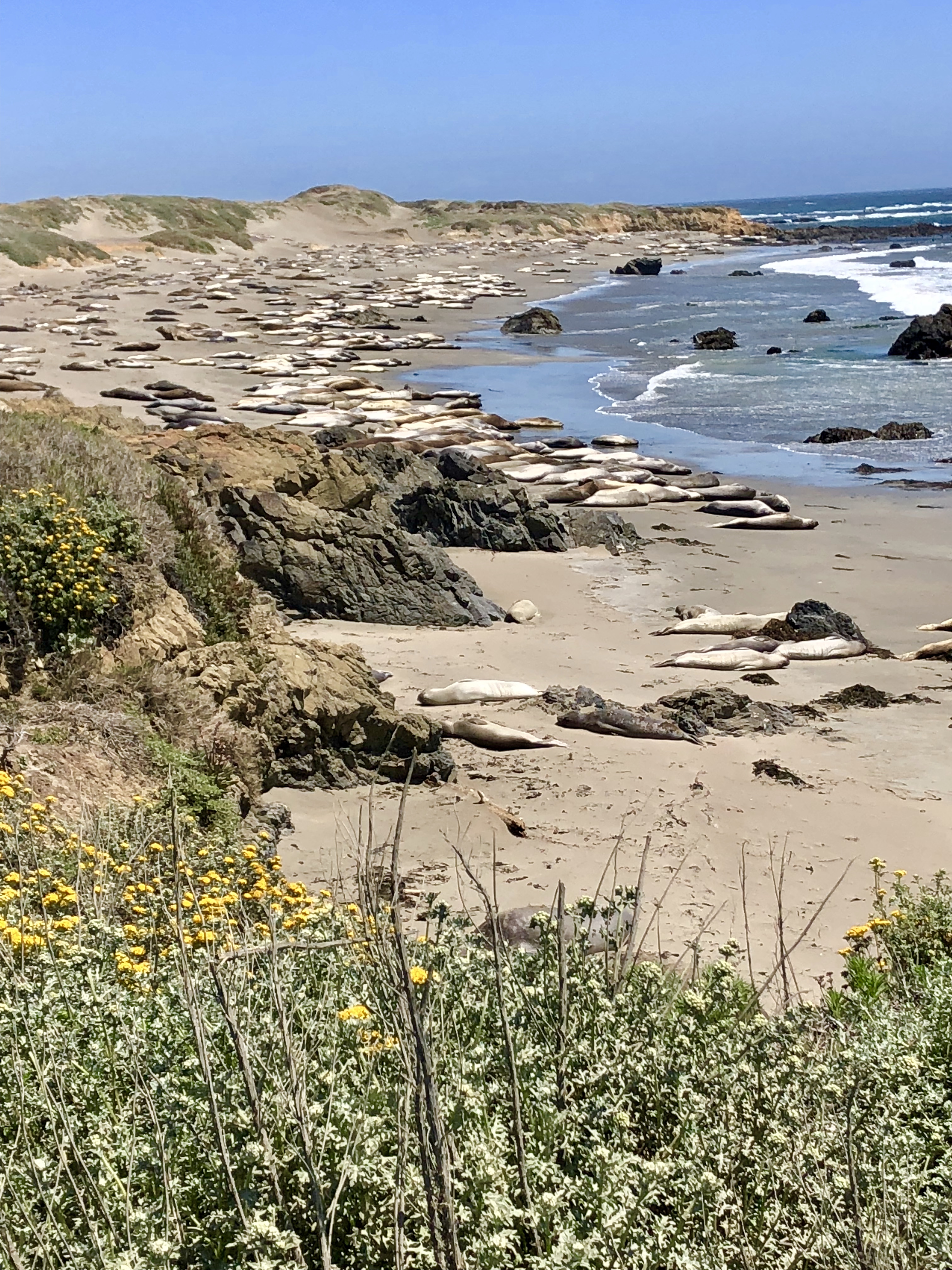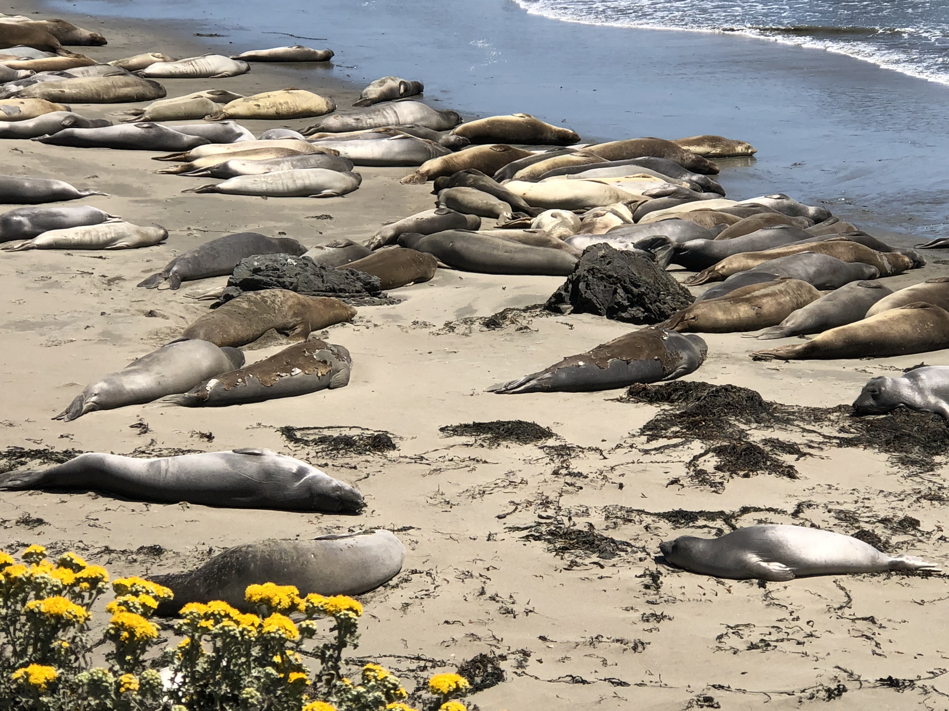 We continued up the coast and saw a huge amount of elephant seals on Vista Point (and the Piedras Blancas Elephant Seal Rookery) sleeping on the beach, just lying there looking dead, but flicking sand on themselves every once in a while. It was really cool to see hundreds of them all piled on the beach sleeping.