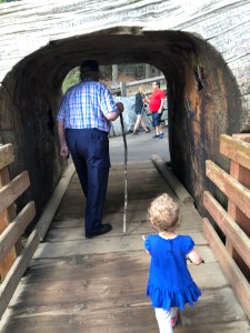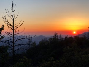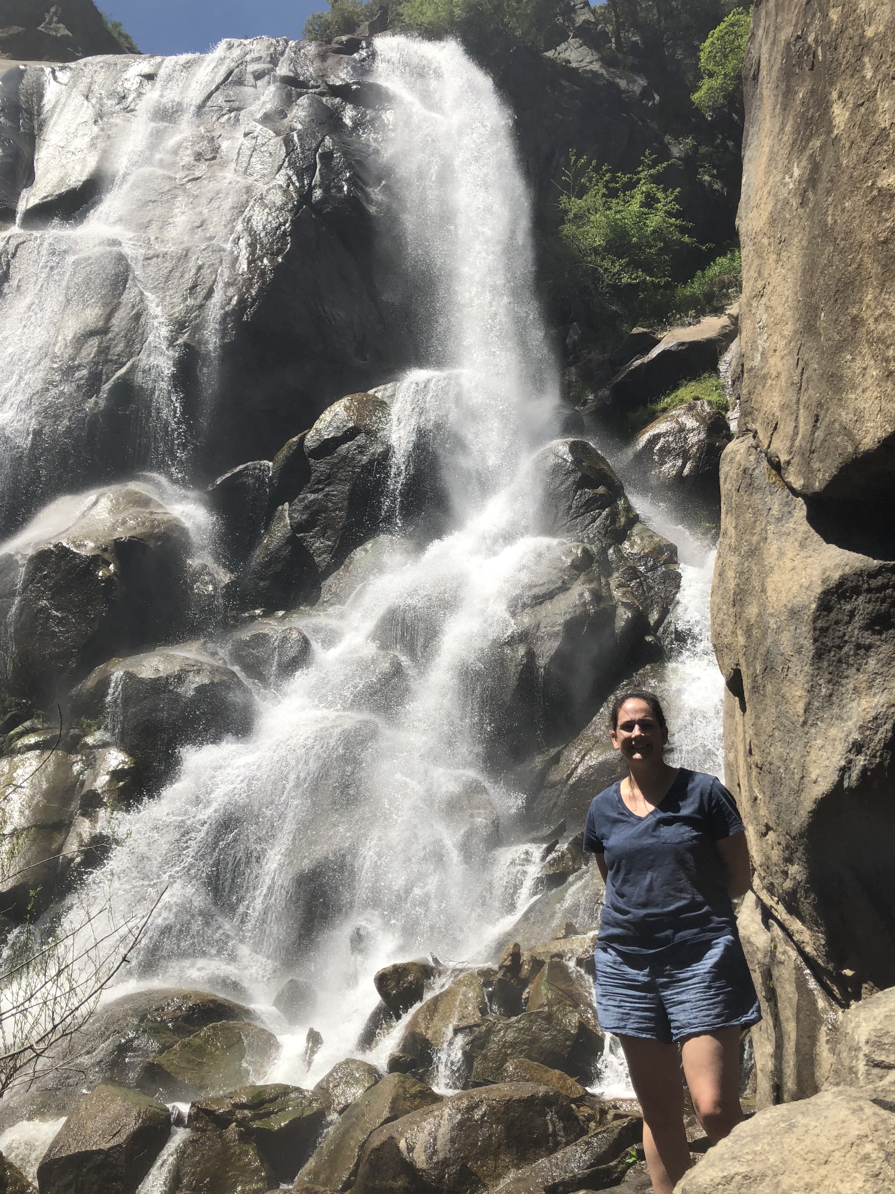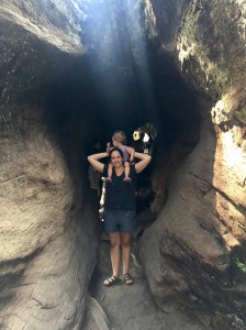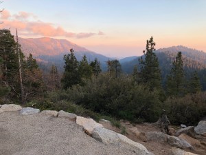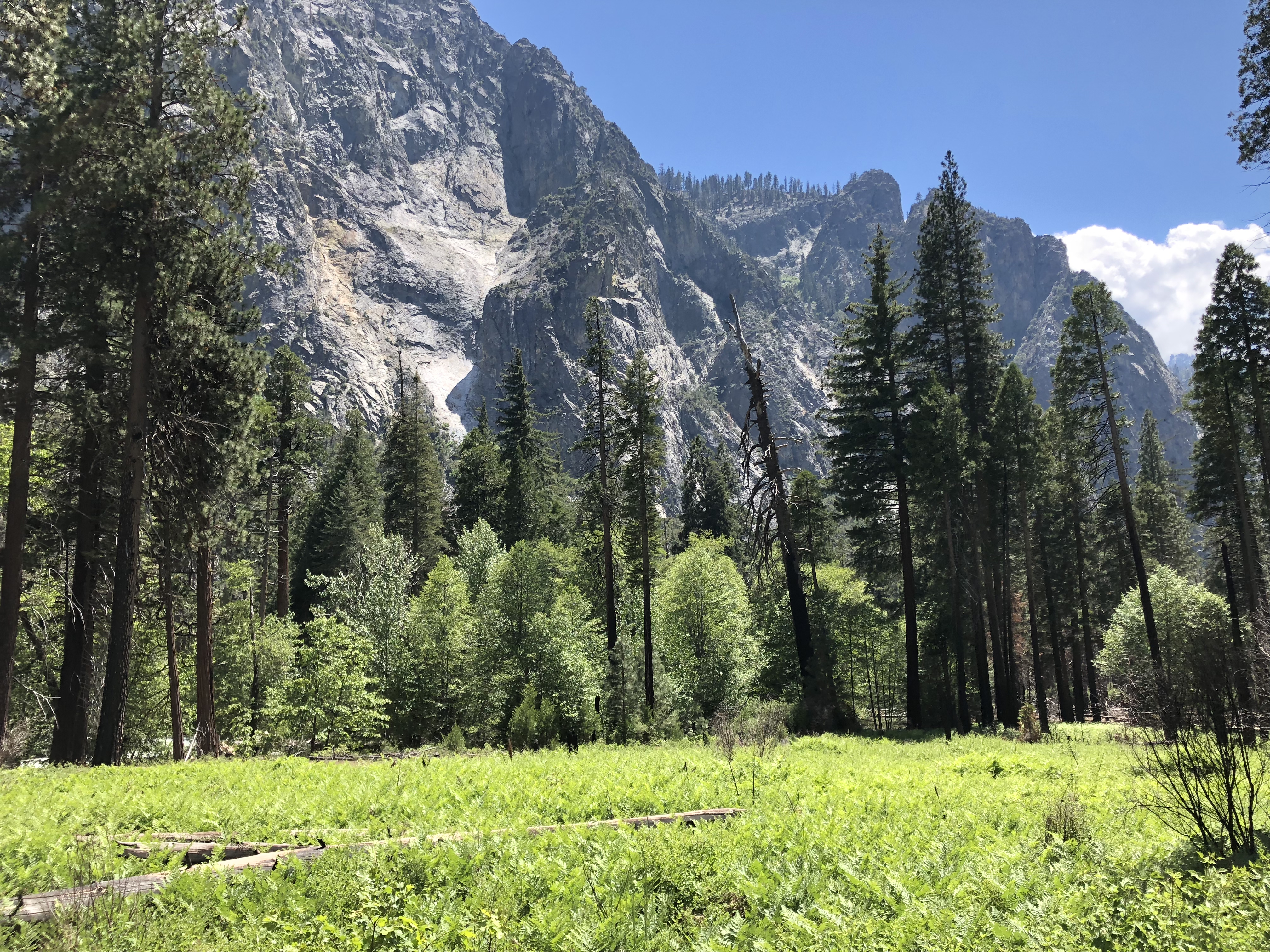 We woke early to get a start on the day to see Kings Canyon National Park. I didn’t really know much about this park, so my expectations weren’t that high. Entering the park (I got my stamp), we saw some scarred land from previous fires. Pretty quickly, the drive turned out spectacular views of canyons and curves. I was driving, and a brown bear jumped off the mountain cliff to my right and ran in front of the car. I almost hit him, but luckily he continued on down the mountain. Nobody else in the car saw it, even though I was screaming with excitement! The canyons were amazing, and the rivers were rushing. There were peaceful valleys, and huge rivers with big boulders. It was really stunning, and I absolutely loved it. It looked like such a nice place to camp. Our route consisted of driving along Kings Canyon Scenic Byway, towards Cedar Grove passed Roaring River Falls, and to the end of the road. On the route back, we pulled in and saw General Grant tree, the second-largest giant sequoia by trunk volume. Around the tree was a nice park with other giant sequoias, and a hollowed out one that had fallen over that we could walk through.